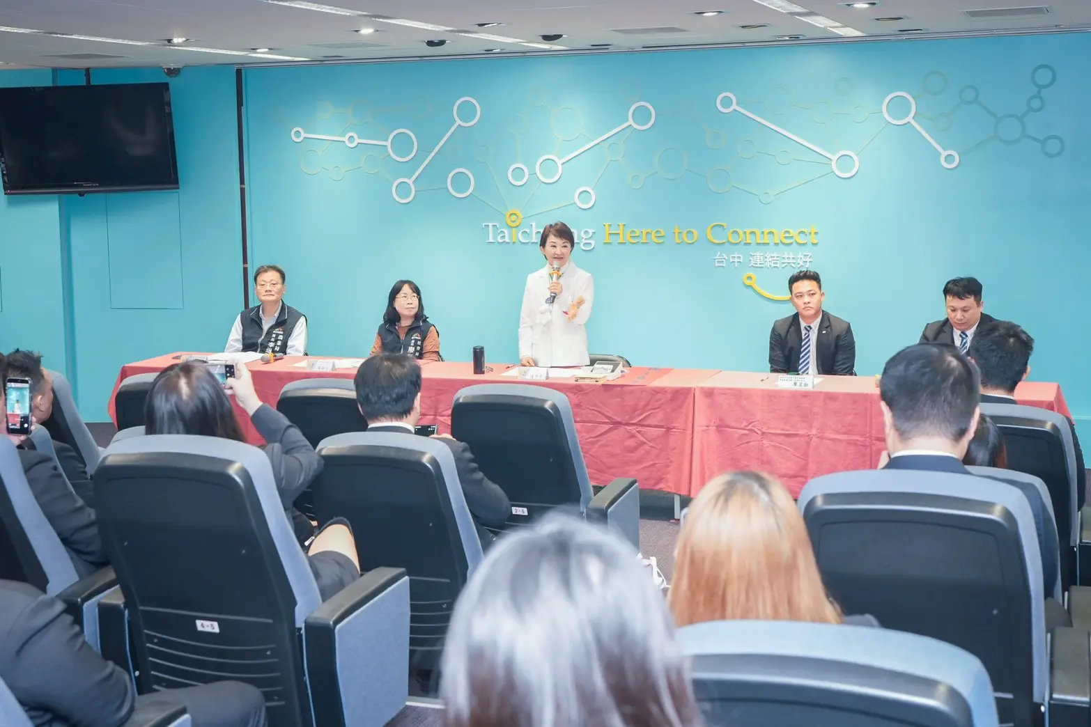 今日拜會活動包含市長盧秀燕、社會局長廖靜芝、農業局長李逸安、國際青年商會中華民國總會常務副會長兼中區會區會長廖昱勛,率領青商會總會、中一區、中二區會職幹部及台中市各分會會長;另,市府經濟發展局、勞工局、人事處及研究發展考核委員會皆派員共同與會。