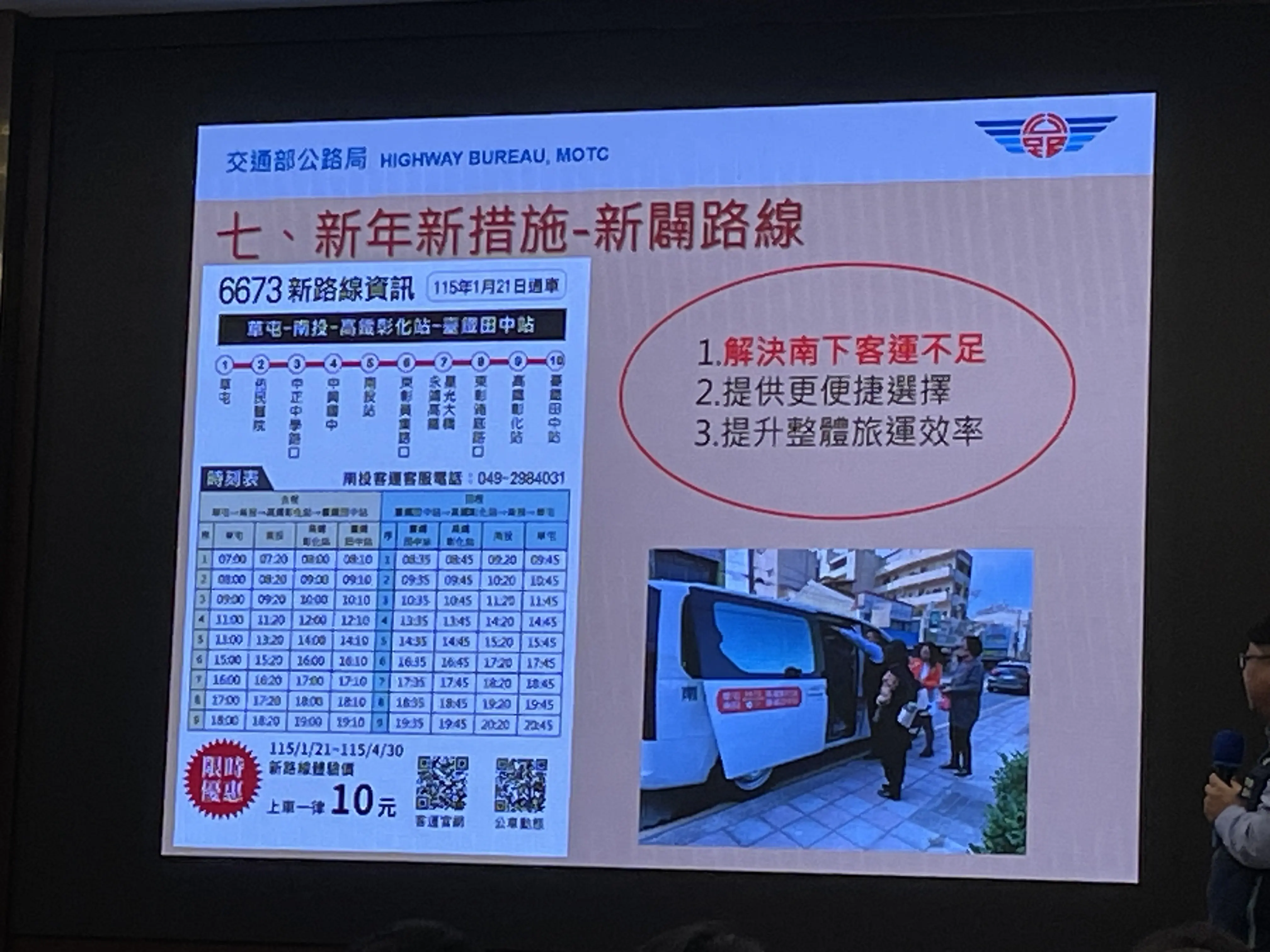 南投監理站陳洽文站長表示,春節及二二八連假期間疏運,請民眾多加利用公共運輸工具,可有效減少道路阻塞,並達成節能減碳之效,亦可利用「iBus 公路客運」APP查詢國道客運、公路客運及部分縣市客運班車資訊。