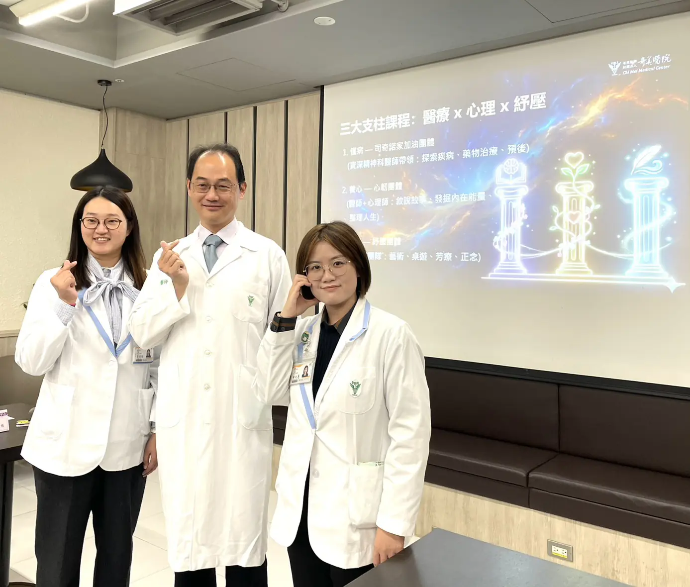 張志誠說明,為了全方位支持家屬,奇美醫院醫療團隊聯手打造三種性質的家屬團體課程,協助家屬從「懂病」昇華至「養心」,包括司奇諾家加油團體(懂病):由南部各大醫院資深精神科醫師帶領,專注於帶領家屬探索疾病議題、症狀樣貌,並深入了解治療方式與預後,建立正確的醫療知識;心韌團體(養心):透過敘事治療,讓家屬述說自己的故事,從中發掘內在能量;紓壓團體(喘息):運用藝術、桌遊、沙遊、正念及芳療等多元方式,協助家屬覺察情緒、釋放壓力,獲得喘息空間。