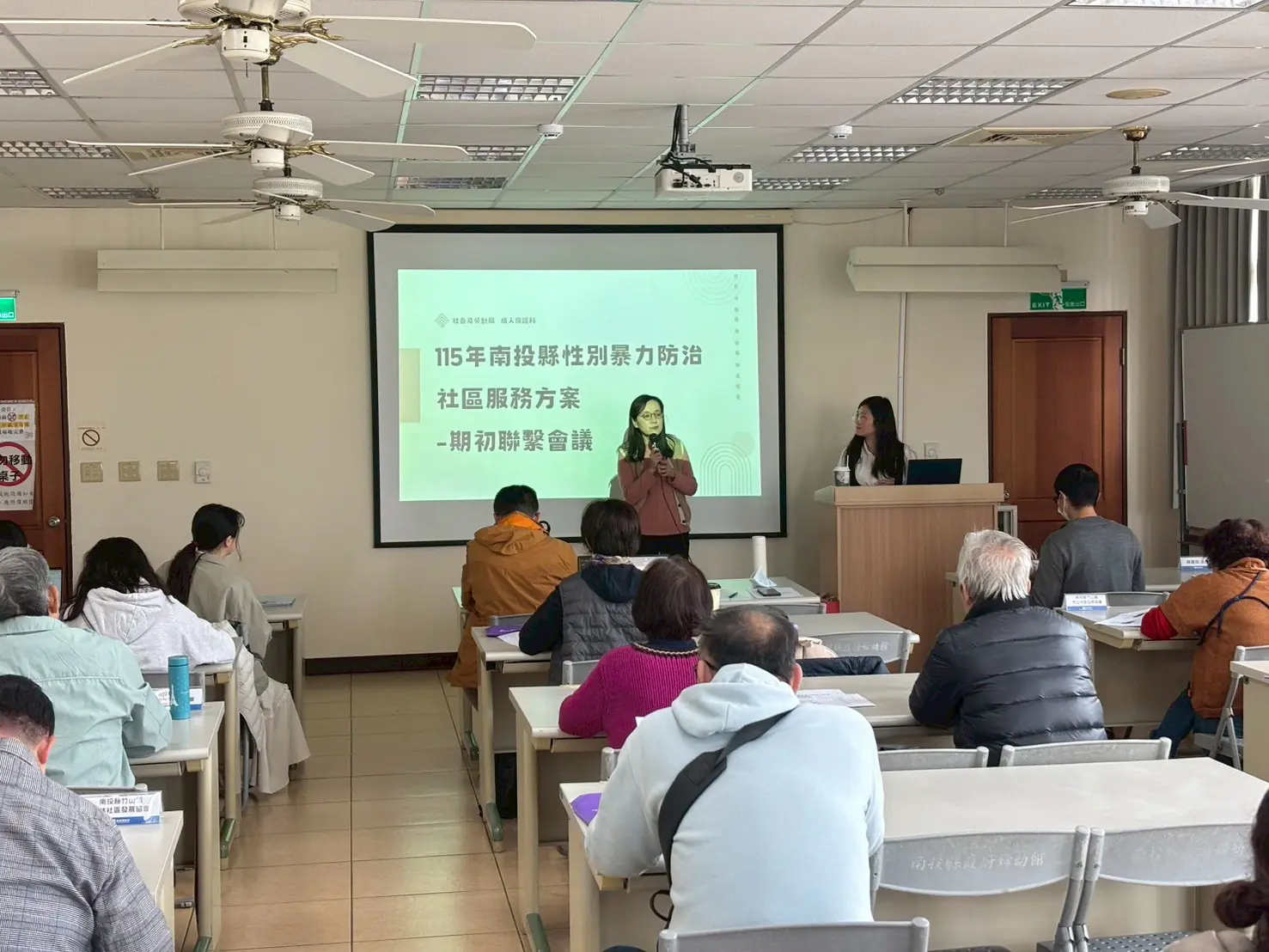 115年度共有14個社區及民間單位獲得補助參與性別暴力防治社區服務方案,包含4個領航社區(南投市營南社區發展協會、草屯鎮平林社區發展協會、草屯鎮新厝社區發展協會、竹山鎮延正社區發展協會)、6個宣導社區(草屯鎮敦和社區發展協會、竹山鎮竹山社區發展協會、竹山鎮雲林社區發展協會、國姓鄉國姓社區發展協會、新住民交流協會、埔里鎮慈恩社區發展協會)及4個新進社區(南投縣南投市大內興社區發展協會、草屯鎮山腳社區發展協會、中寮鄉和興社區發展協會、南投縣友善產業推廣協會),透過不同角色分工宣導,逐步建構完整的社區防暴網絡。縣府未來也將持續推動並擴大實施範圍,邀請更多在地組織共同投入,攜手打造安全、友善、宜居的南投縣。