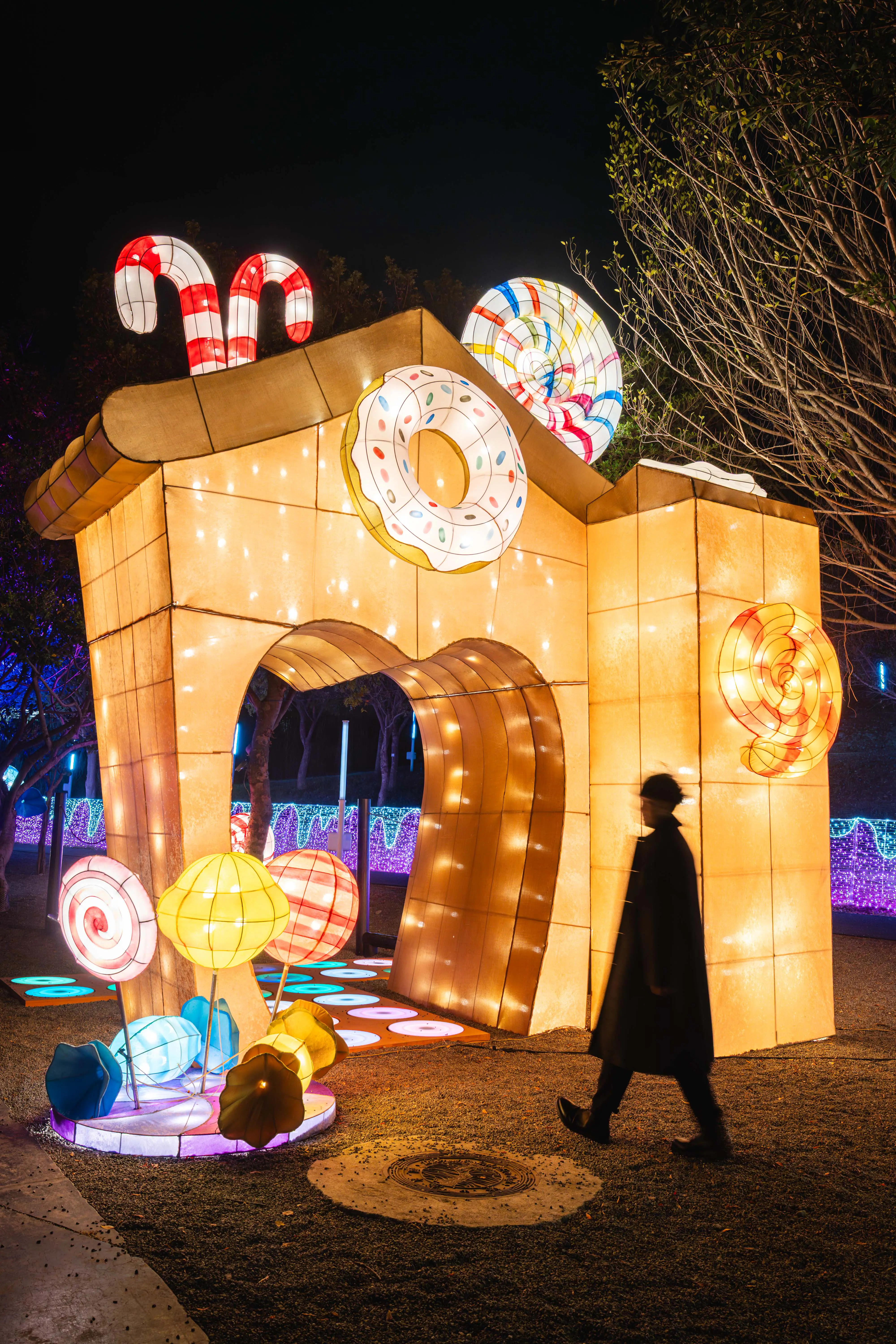 教育局長蔣偉民說,「童趣歡樂谷」燈區共設計「童趣歡樂谷、智慧糖果屋、勇敢音樂家、田野奇跡、幸福馬車、逐夢之樹、夢飛象、蛻變的小鴨」等8座特色燈組,結合傳統花燈與異材質設計,融合光影藝術、音樂、表演及互動體驗等多元呈現方式,將耳熟能詳的經典童話故事重新以藝術裝置燈組詮釋,以小巧思達到故事想傳達給讀者的精髓之處,展現煥然一新的教育局燈區風貌,營造歡樂甜蜜的節慶氛圍,打造深受大人與孩童喜愛的親子燈區。