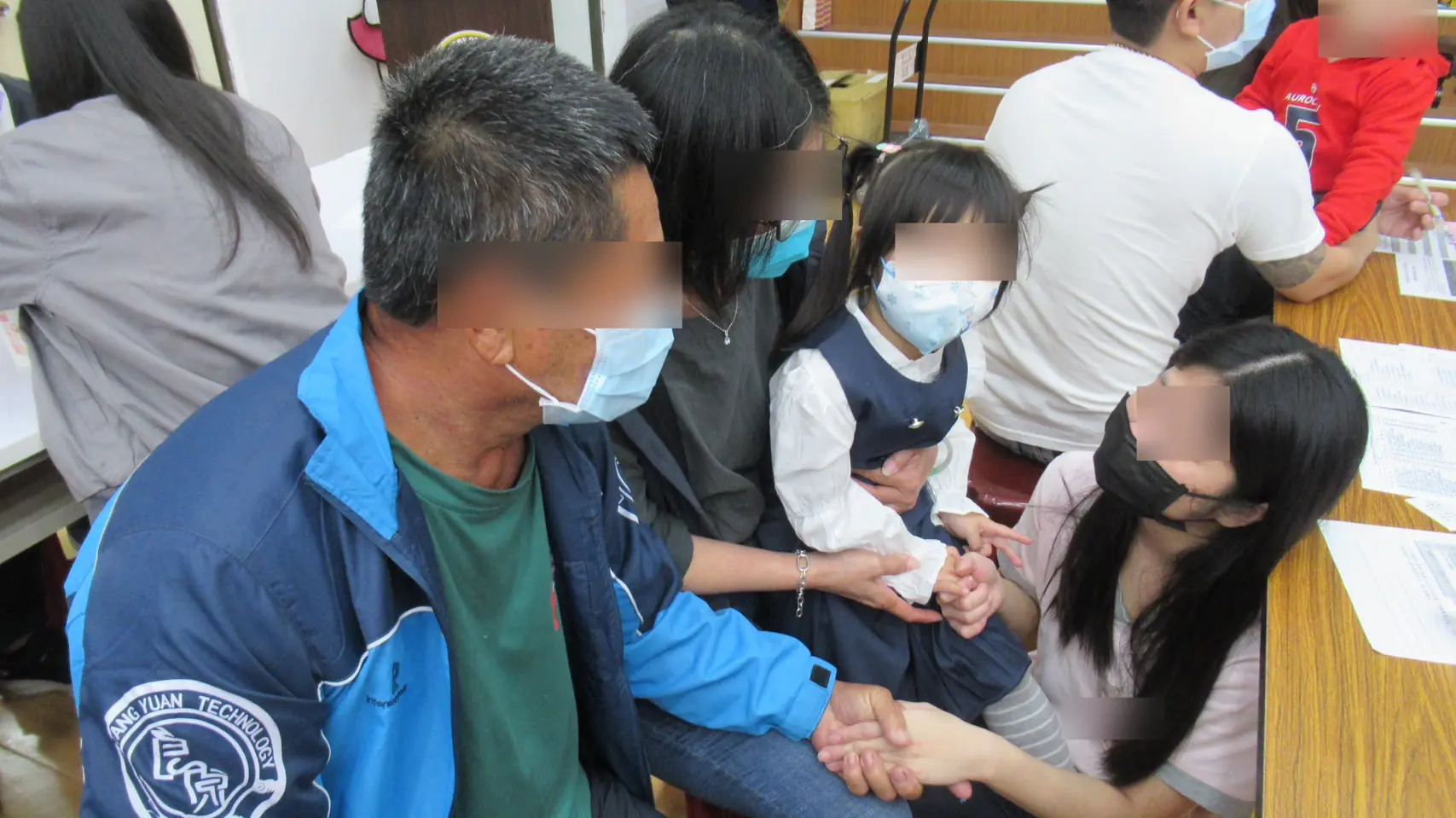 收容人佩佩(化名)坐在會場角落,等著年邁父母與年幼女兒。