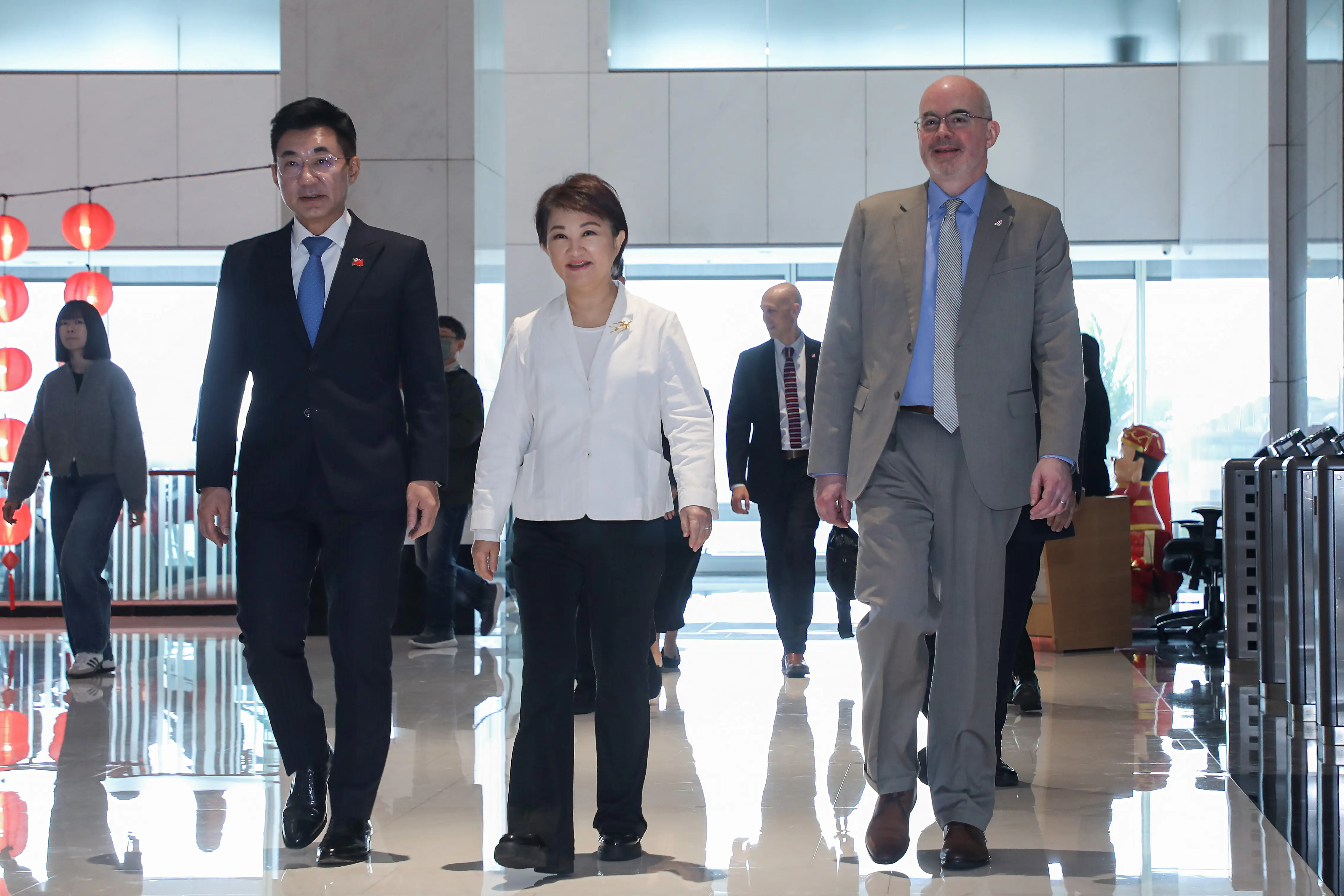 因應AI機器人技術快速發展趨勢,市長盧秀燕今(6)日出席「中部AI機器人產業發展交流座談會」與美國在台協會(AIT)處長谷立言(Raymond F. Greene)、立法院副院長江啟臣及產業代表共同交流。盧市長表示,台中憑藉精密機械聚落、豐沛人才紅利、多元驗證場域及國際會展中心四大優勢,已成為全球供應鏈核心,並藉由與國際及產學界深度合作,台中正主動創造未來,致力轉型為「AI機器人之都」,市長更呼籲中央加碼投資,串連中南部形成「科技中南半島」,以數位力強化城市競爭力,領航台灣科技飛向世界。