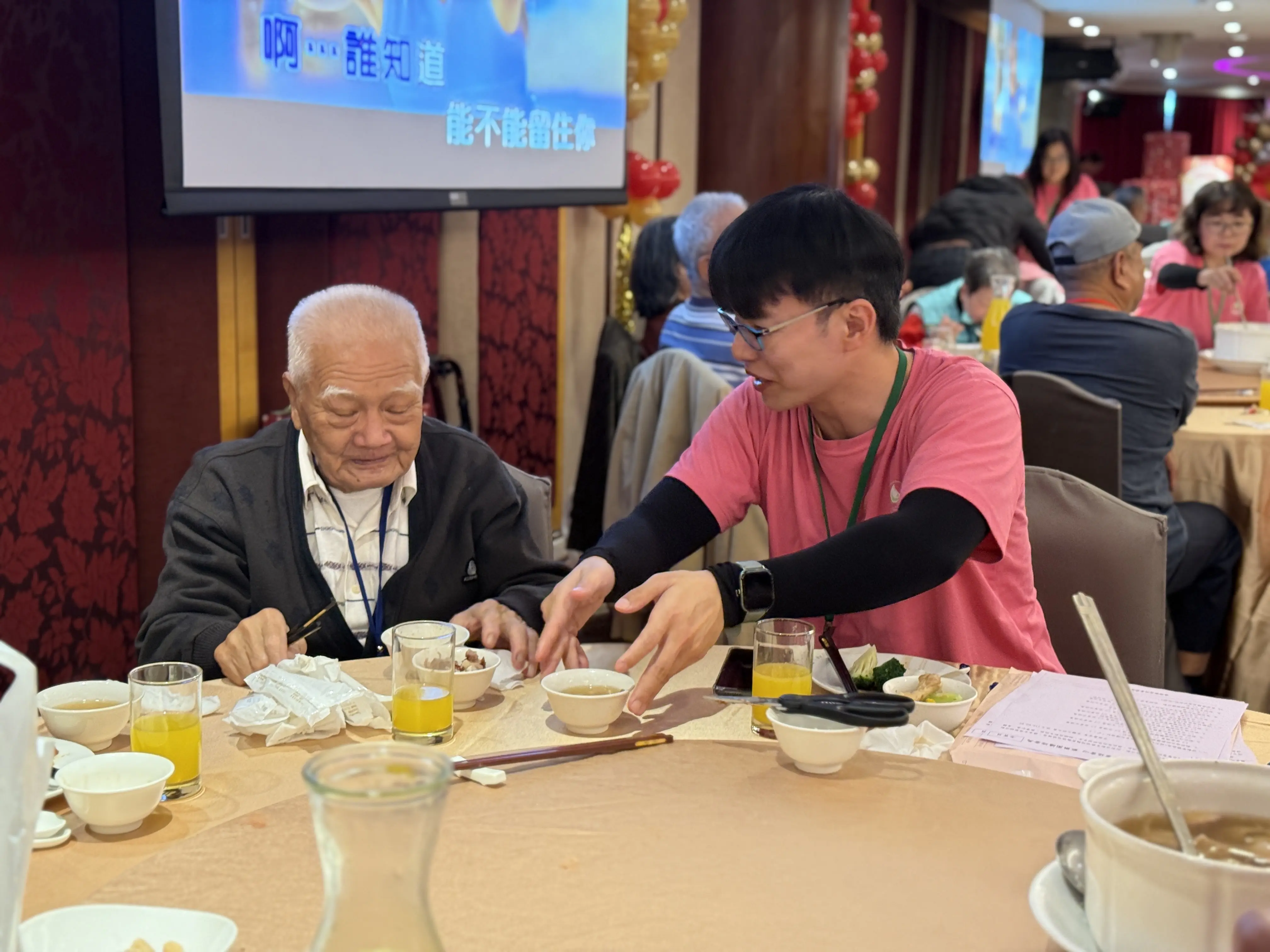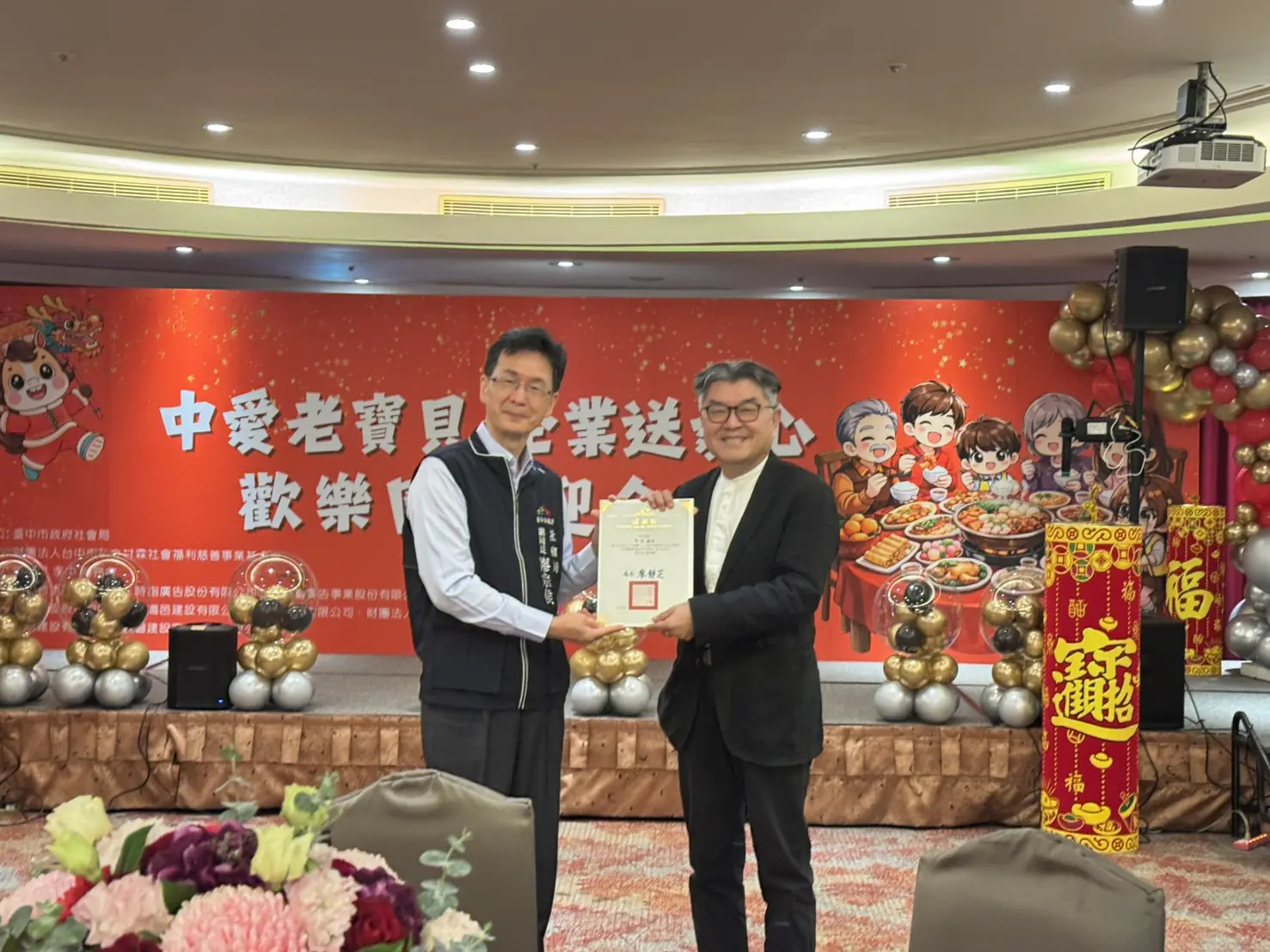 市府社會局副局長廖宗侯代表市府頒發感謝狀,感謝企業多年來持續守護台中「老寶貝」,也向辛苦接送、全程陪伴的志工們表達謝意,肯定大家如同家人般陪著長輩一起吃頓團圓飯,讓獨居不再孤單。