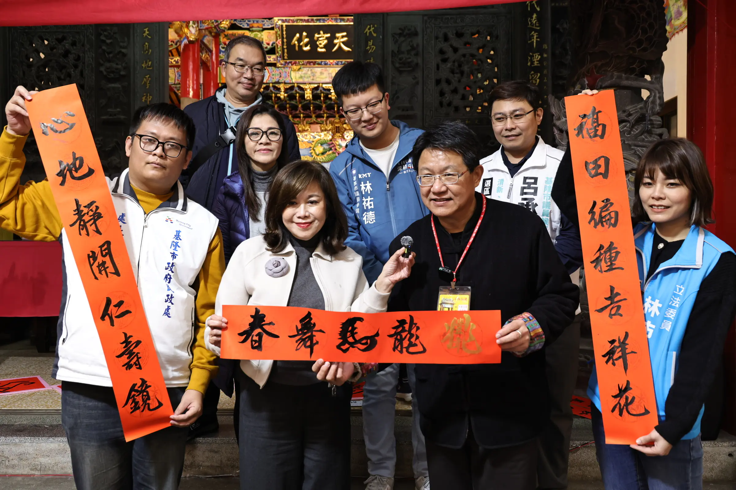 大竿林代天宮春聯揮毫迎新春 邱佩琳與基市府團隊送祝福賀新年