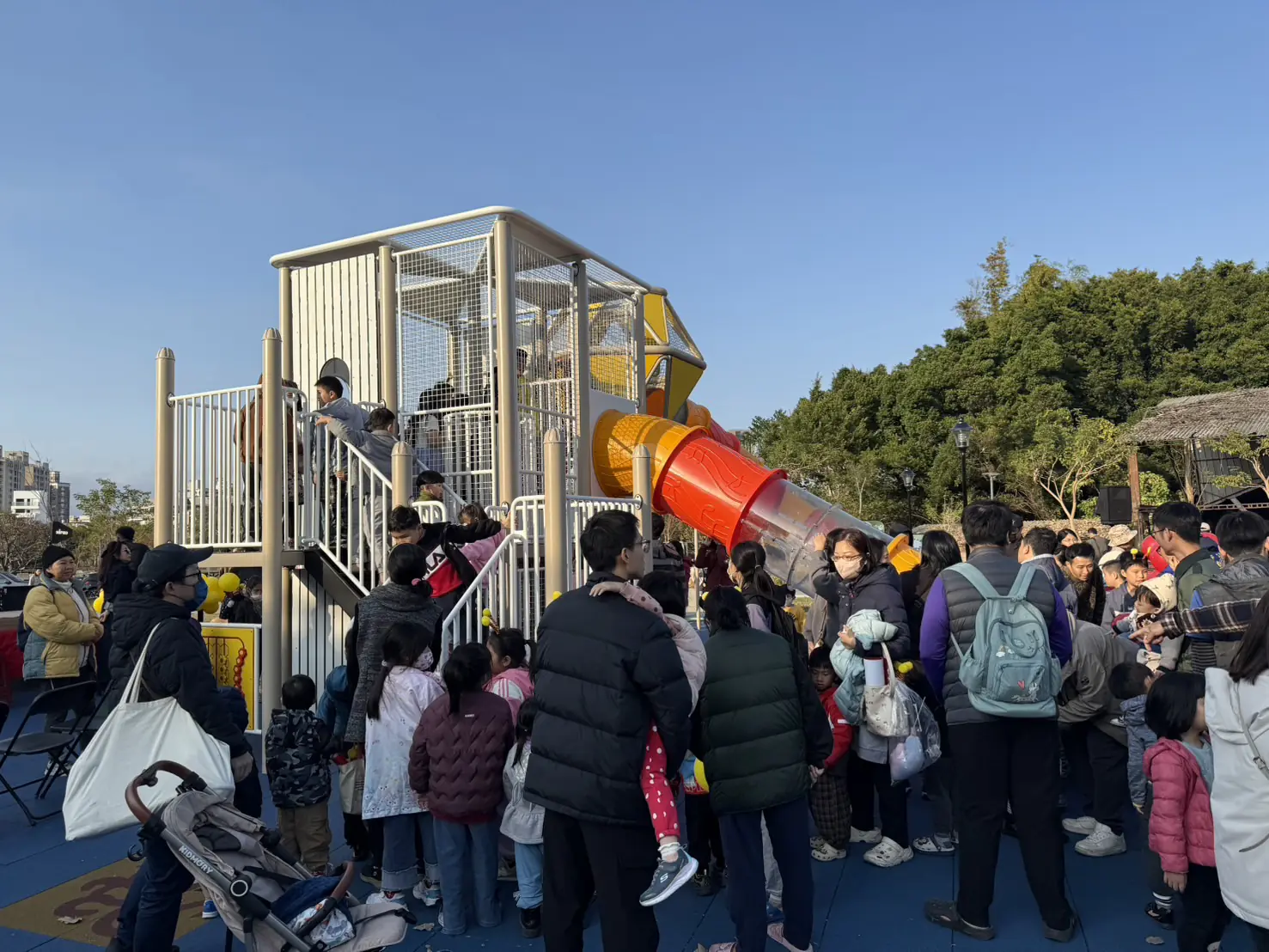大里涼傘樹公園「探索城堡」啟用後,吸引大批民眾到訪體驗