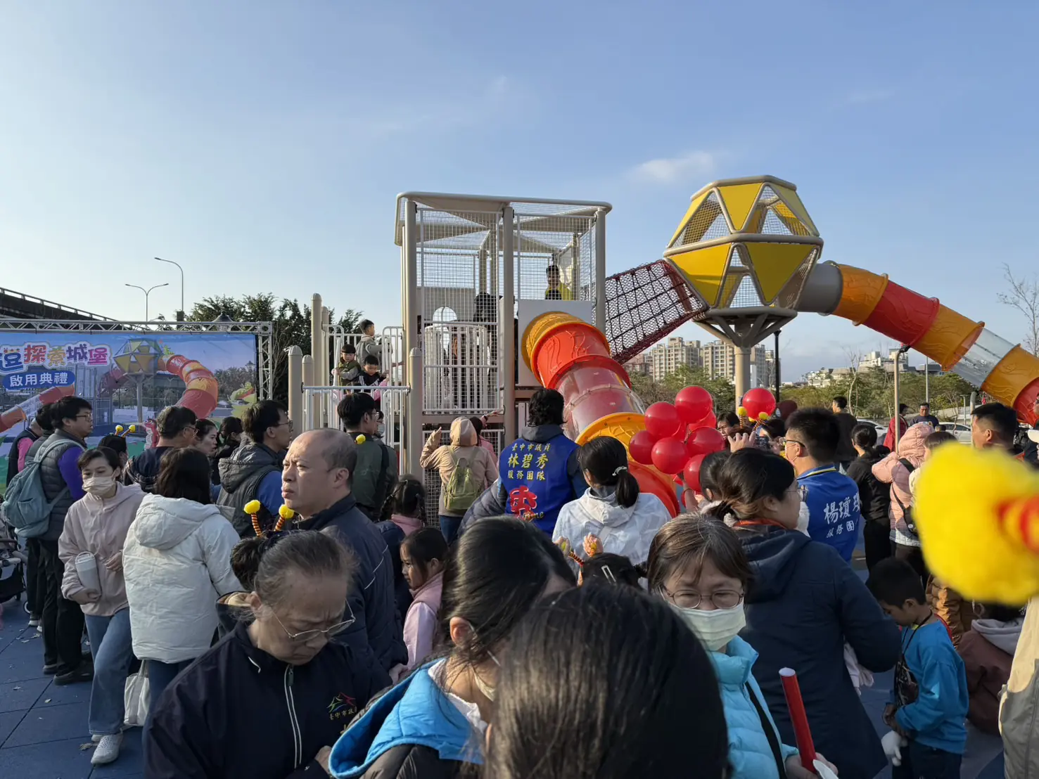 此次共融遊戲場啟用活動由地方自發性辦理,市府鄭照新副市長、立法院副院長江啟臣、立委楊瓊瓔、市議員林碧秀、大里區長鄭正忠,以及在地里鄰長與地方鄉親皆到場共襄盛舉,一同見證涼傘樹公園「探索城堡」正式啟用的重要時刻。