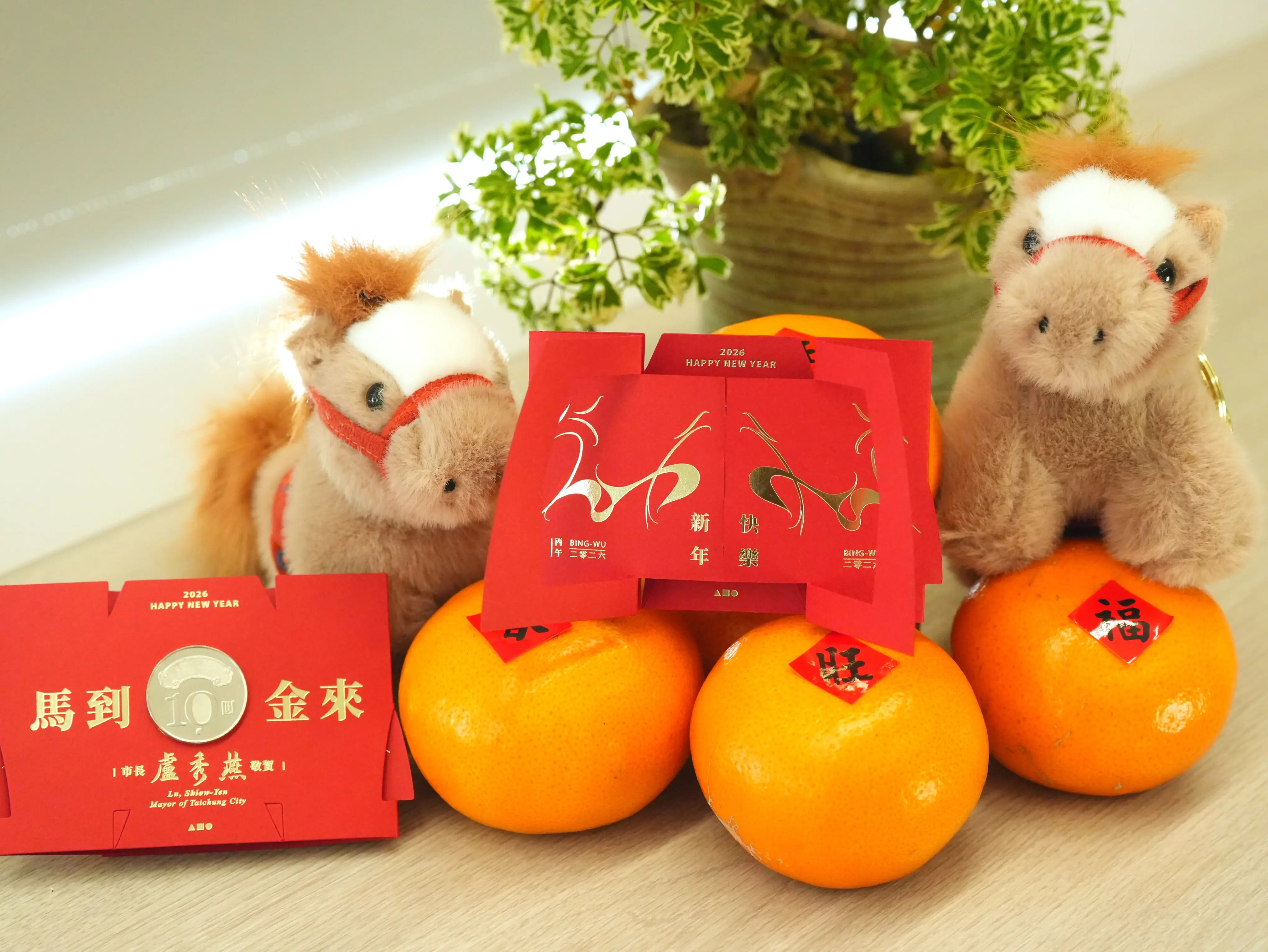 2026 農曆丙午馬年將至,為祝福市民幸福安康並分享年節喜氣,台中市長盧秀燕2月17日(大年初一)將走訪 4 間宮廟發送馬年新春賀歲小紅包。民政局長吳世瑋表示,今年小紅包以「豐盛共享」為主題,採左右開合設計,合攏時呈現兩匹駿馬並肩前行,象徵市政成果蓄勢待發、攜手向前,展開後紅包內則貼有十元硬幣,並印有「馬到金來」燙金祝賀詞,祝願市民新的一年事業、財運與生活都能順利進帳、好運連連。