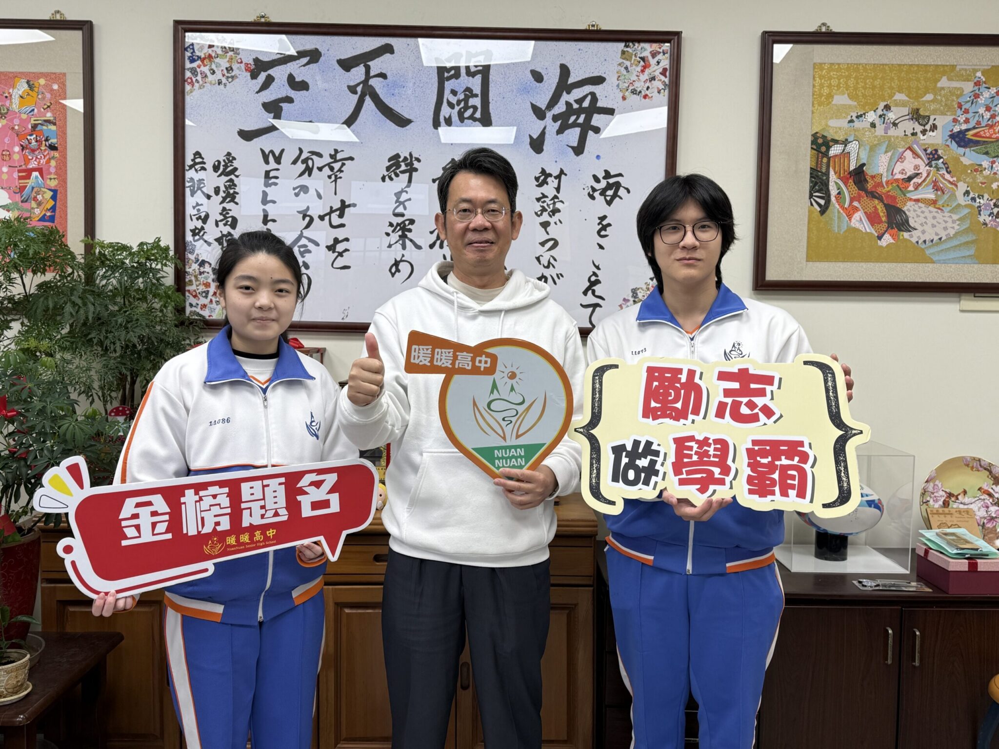 暖暖高中邱同學(左一),放棄臺北的高中選擇直升暖暖高中,藉由縮短通學的時間,持續不斷的提升自我要求,最終錄取「國立政治大學財政學系」。