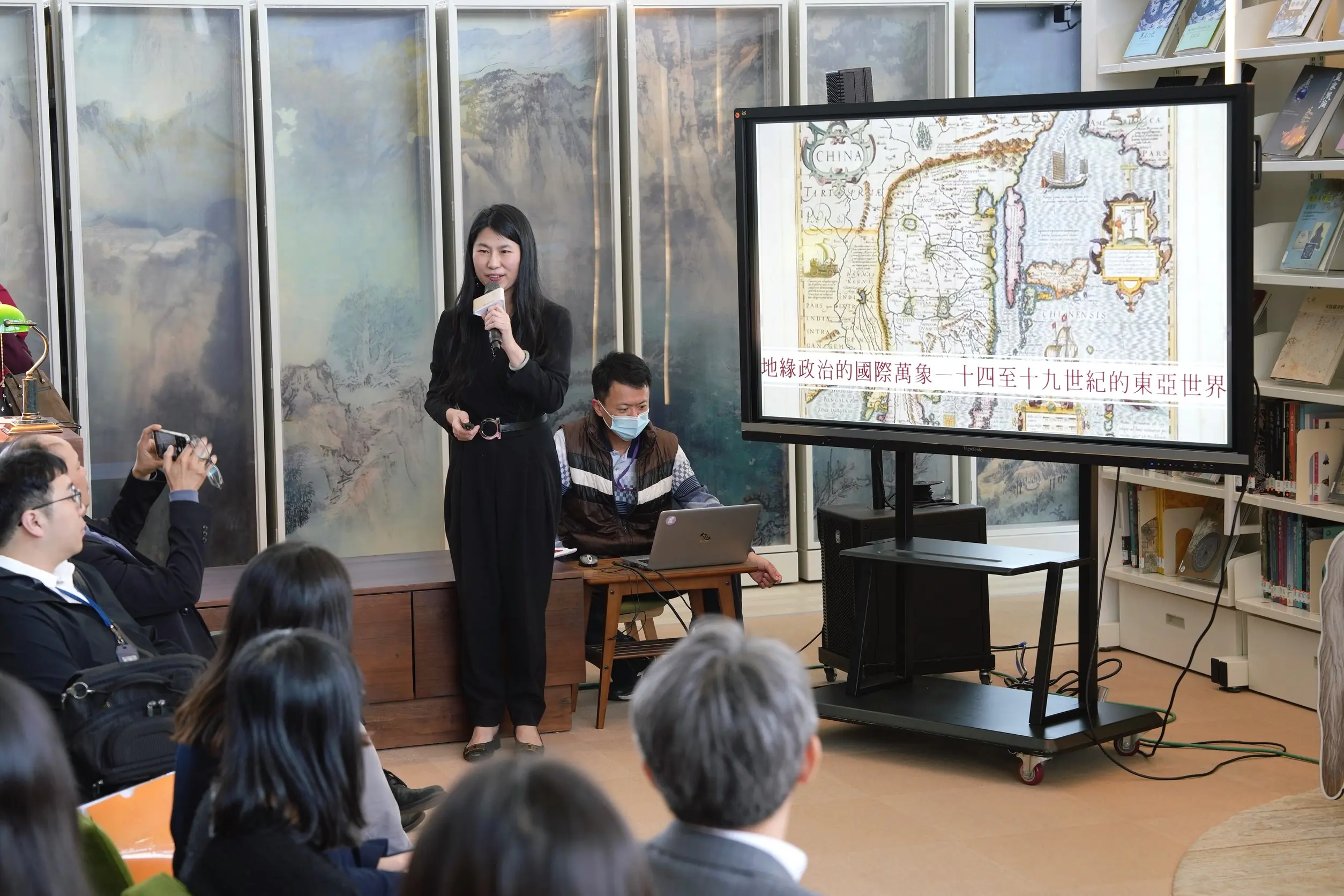 另一檔自2月15開展的「地緣政治的國際萬象十四至十九世紀的東亞世界」,則將觀眾視角拉至近世東亞國際秩序的形成與轉變。書畫文獻處策展人鄭淑方助理研究員表示,展覽關注自明立國以來,明清中國、朝鮮、日本與琉球之間的外交互動與政治角力,探討以「職貢體制」為核心的國際秩序如何運作,並呈現其在不同政權策略下的認同、調整與挑戰。透過地圖、圖像與相關文獻引導觀眾理解東亞地理空間如何影響政治結構,使節往來、書畫交流在國際秩序建構中所扮演的角色。