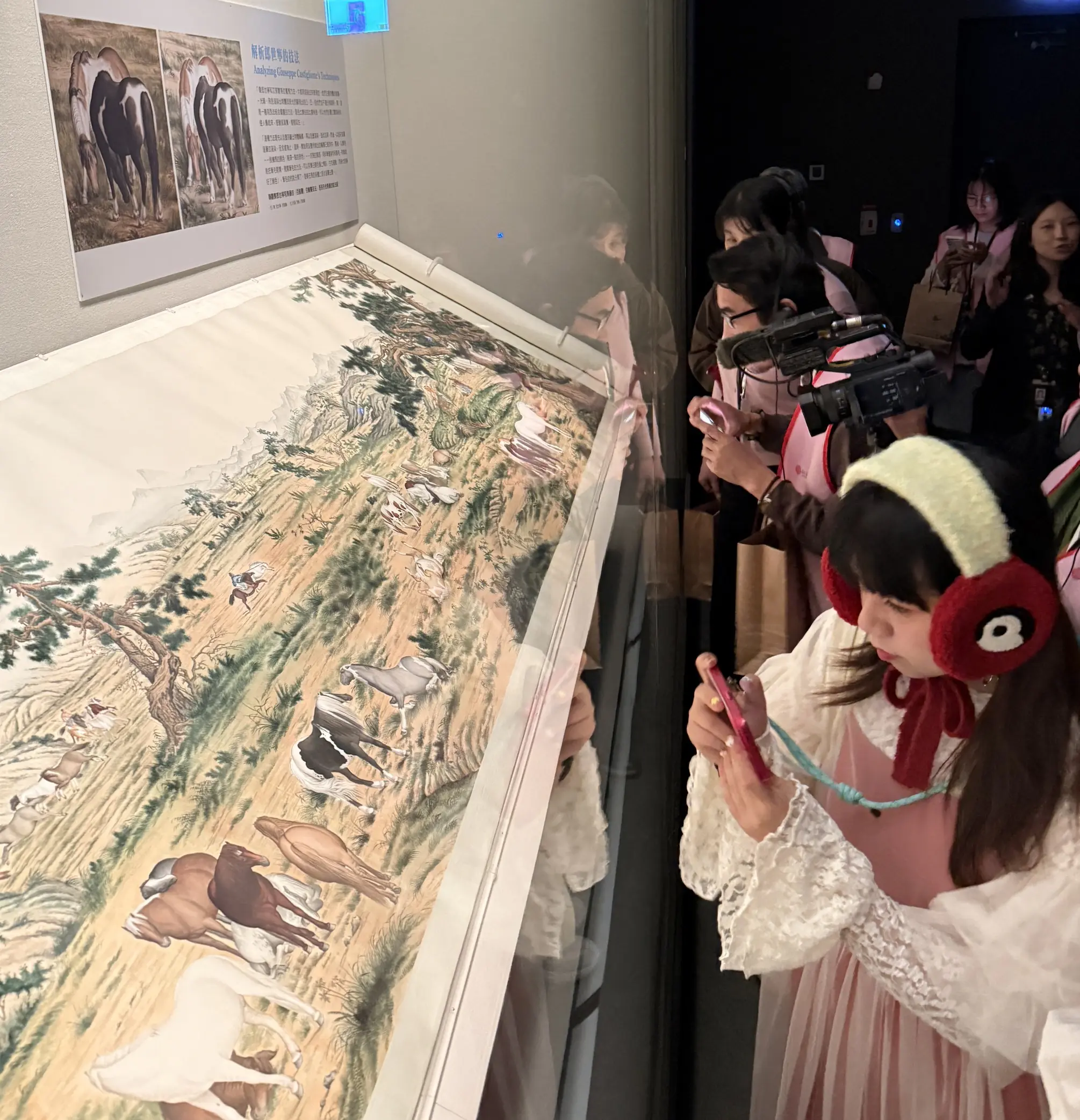 展覽中以郎世寧〈百駿圖〉為重要參照,透過相關圖像與說明,解析繪畫中融合西方透視與明暗渲染的手法,如何形塑畫面縱深與馬匹肌理,數位展示〈古畫動漫百駿圖〉動畫展演呈現畫中駿馬的生態與書畫文物形成有趣的對照民國畫家馬晉於1923繪〈百駿圖〉,以傳統工筆結合西洋明暗設色,展現近代畫家對宮廷畫風的再詮釋,亦反映郎派已被視為中國畫傳統的一部分。展覽並梳理歷代馬畫常見主題,如天馬、貢馬、瘦馬、番馬與人馬,呈現馬畫題材在文人精神與歷史境遇中的多重意涵。