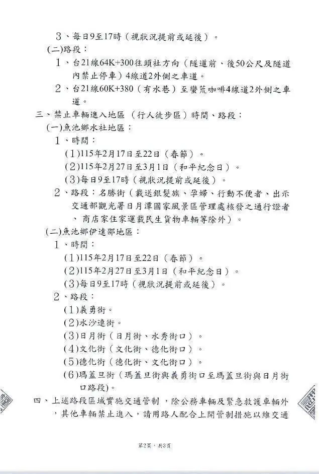 為因應115年2月17日至22日春節連續假期返鄉與旅遊車潮, 集集警分局提前部署交通疏導與安全維護措施, 針對轄內主要交通動線台16線、台21線、 台21甲線及131縣道等重要路段,全面啟動交通疏導勤務, 確保連假期間道路通行順暢,降低壅塞及交通事故發生風險。