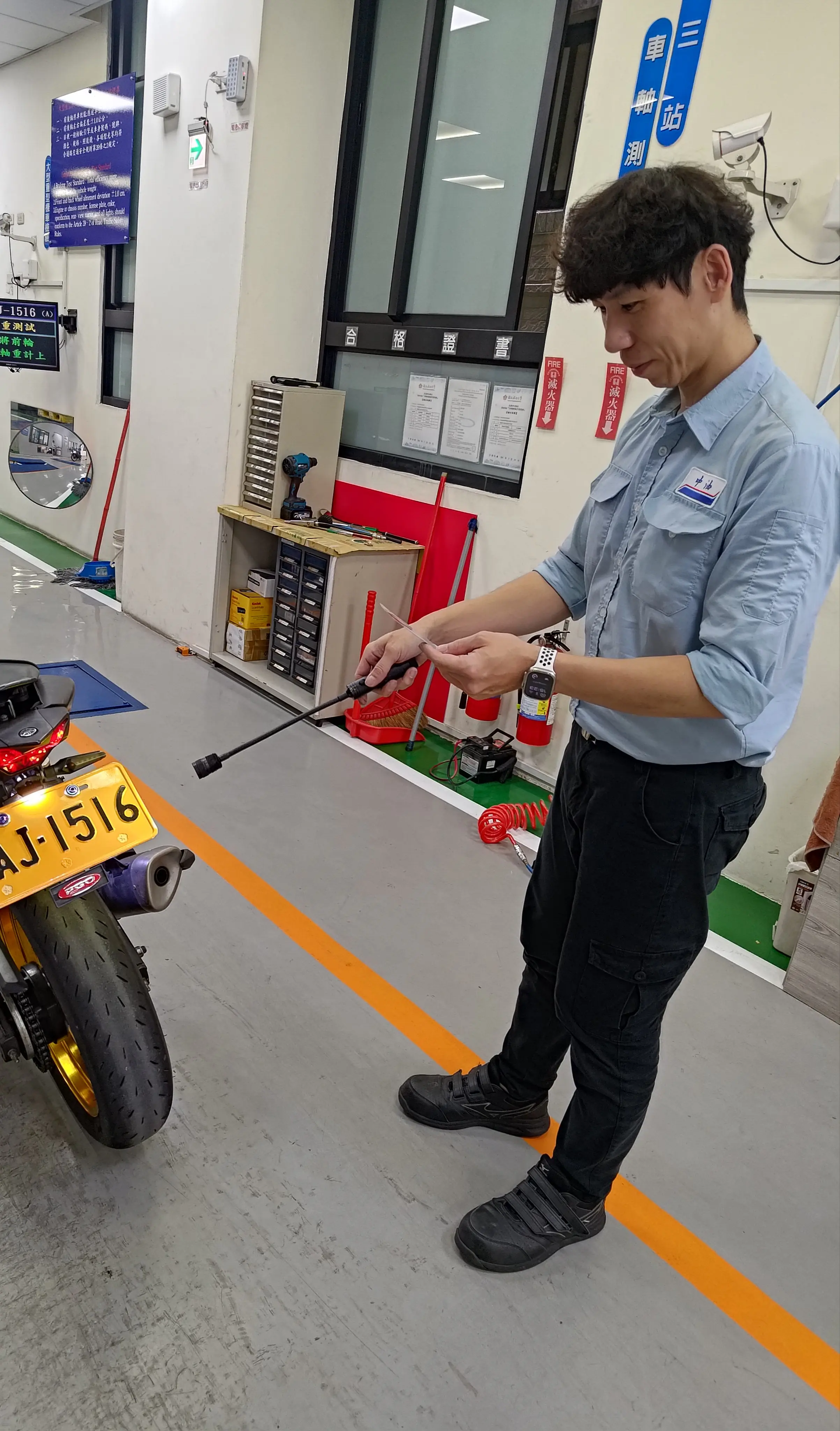 圖説:代檢廠辦理機車檢驗。(監理所提供)