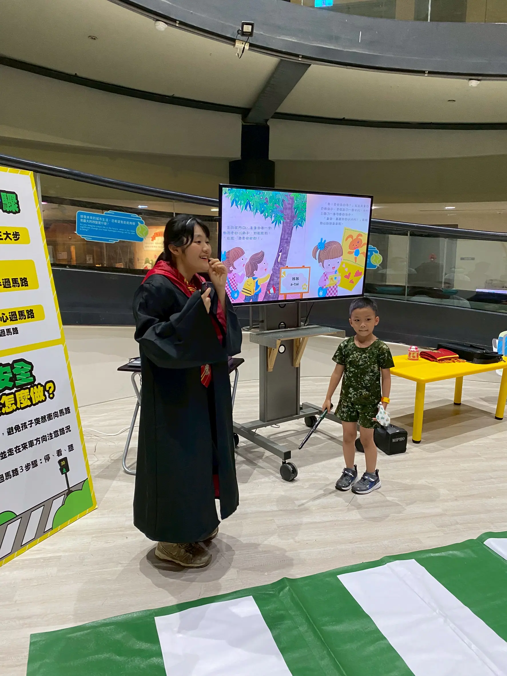 「臺灣交通做陣走」是對3至8歲孩子所設計的幼童母語交通安全教育,藉由繪本導讀結合交通安全模組操作,在母語語境中教導孩子「停、看、走」的道路安全常識。活動融合臺灣常見交通文化元素,以生動的臺語台語教學讓孩子了解街道危險區域,並在玩樂中培養交通安全意識,活動地點B1F兒童科學園。