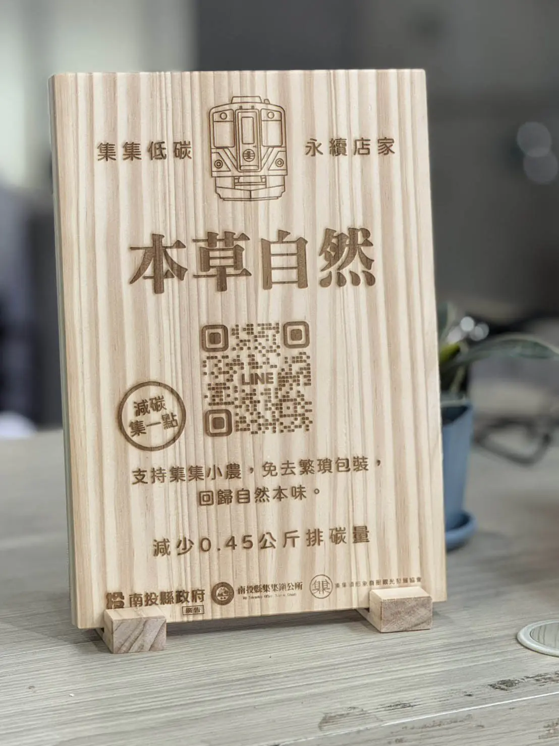 另有「減碳集一點」LINE 官方數位帳號集點方案,結合食、宿、遊、購、行五大面向,整合集集在地30家店家與6大核心景點,透過官方LINE數位集點,鼓勵遊客走訪商圈特色店家及文化景點。每處站點樹立的減碳立牌,以在地廢棄木材雷雕而成,並於立牌上呈現該站點之平均減碳值與永續知識小語,透過「數位集點」與「碳足跡計算」,民眾在旅遊過程中,即可直觀感受減碳行為對環境的貢獻,也促進在地商圈消費與發展,實現「帶走感動,不留碳蹤」的綠色初衷,讓集集的繁榮與自然生態和諧共生。