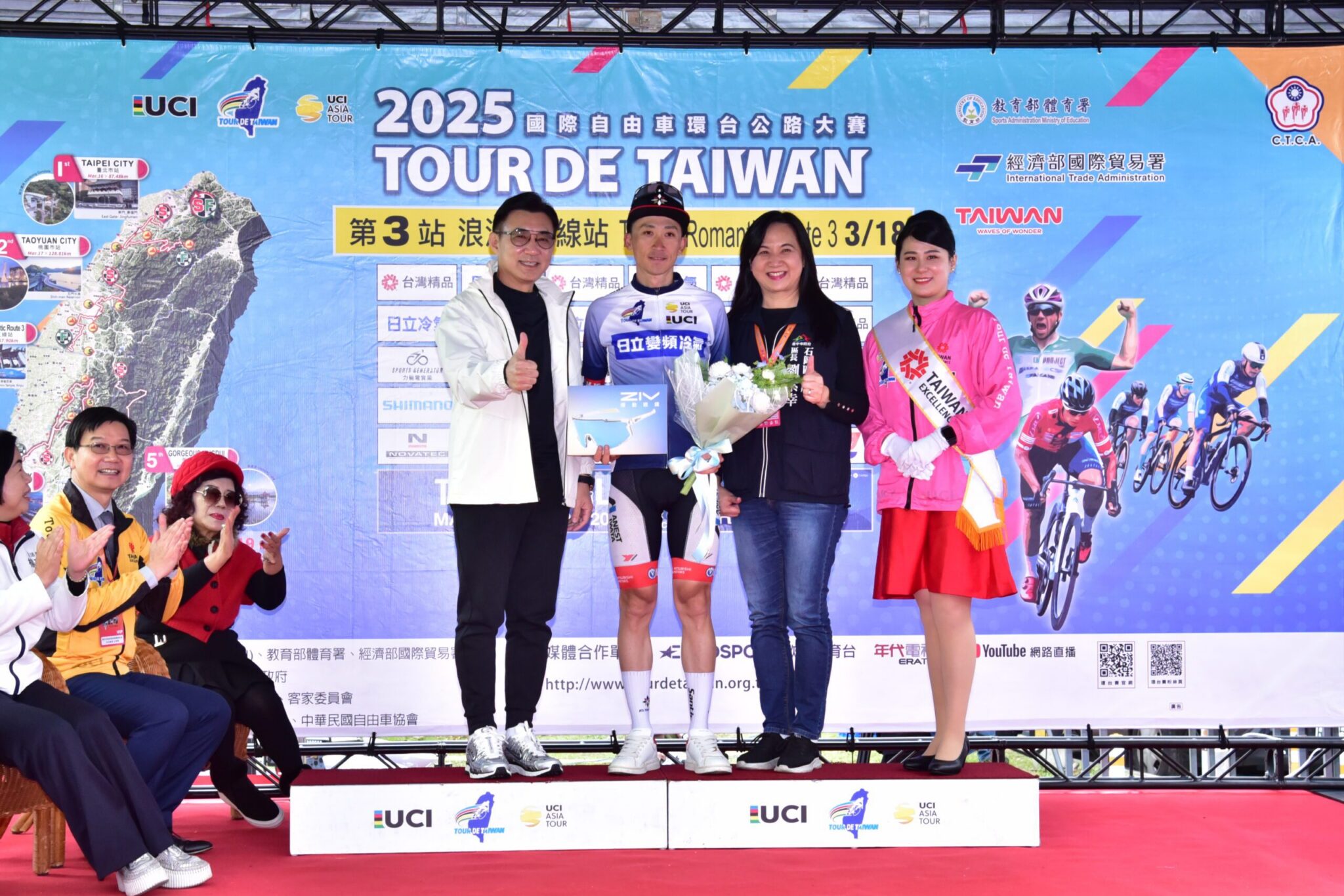 浪漫台三線站的最終成績,由奧地利律高隊BALLABIO Giacomo以3時29分12秒奪得個人分站冠軍,並由市府客委會主委江俊龍及中華民國自由車協會秘書長李開志頒發獎項,以色列職業車隊KRETSCHY Moritz取得黃衫(個人總冠軍)及綠衫(衝刺搶分),日本右京隊小石祐馬獲得藍衫(最佳亞洲運動員),馬來西亞登嘉樓隊BREGNHØJ Mathias奪得紅點衫(登山王),而在地好手馮俊凱則取得分站最佳亞洲運動員第1名的佳績,最佳中華台北則由中華隊選手何彥誼奪得。