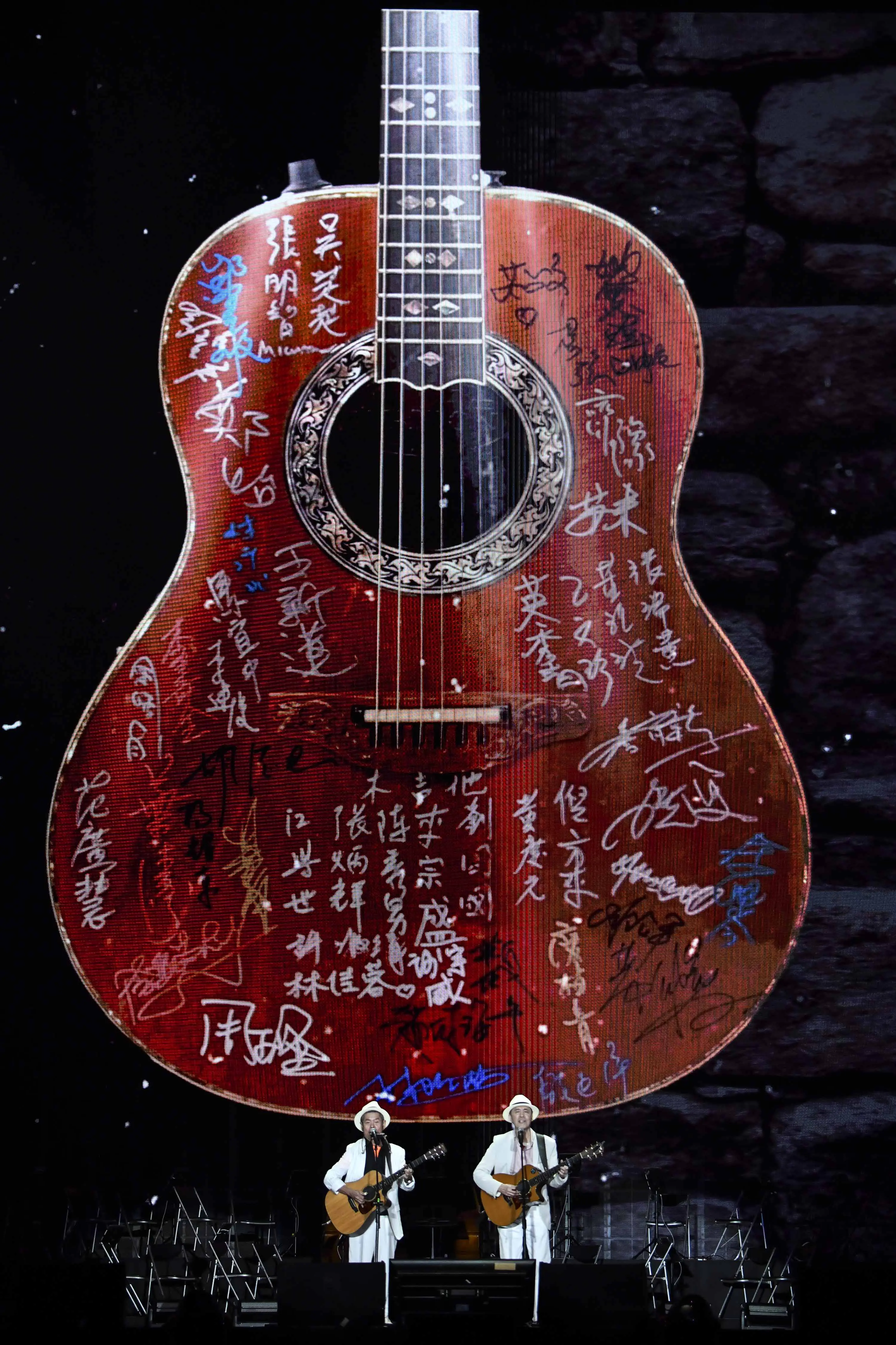 民歌50年再相聚,歌手們在紀念吉他上留下珍貴的簽名。   圖片提供:中華音樂人交流協會