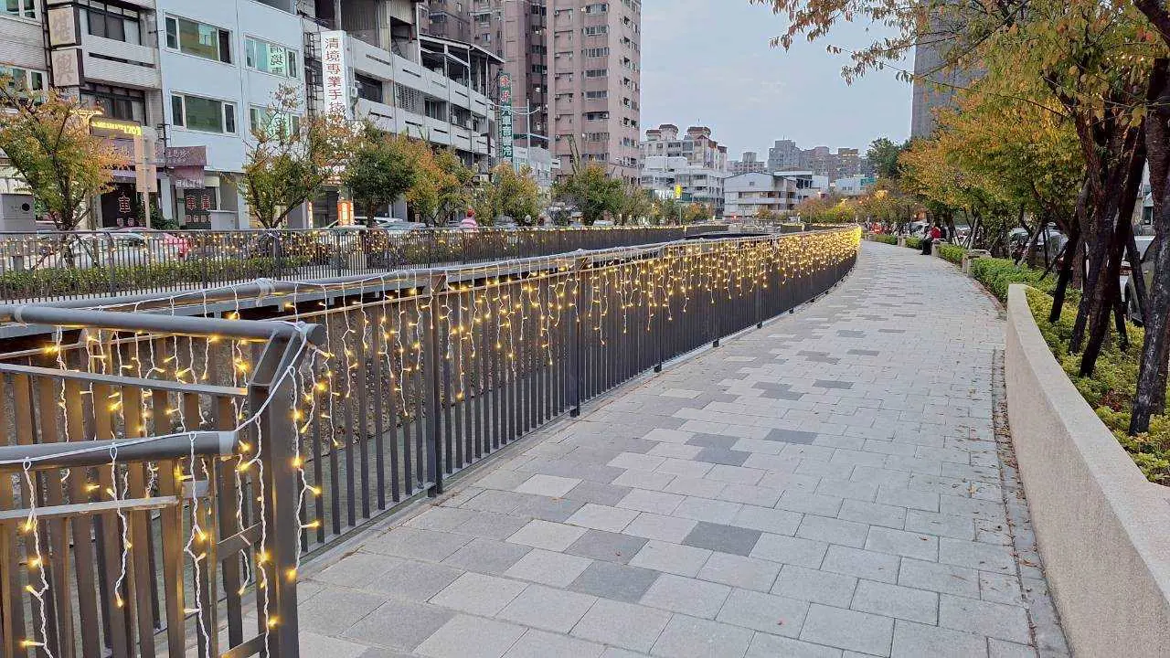 陳局長指出,燈飾布設不僅提升河岸景觀層次,也強化夜間空間辨識度與安全感,讓園道從單純通行功能升級為兼具美感與溫度的都會休閒空間,進一步提升北區整體生活品質與景觀吸引力。