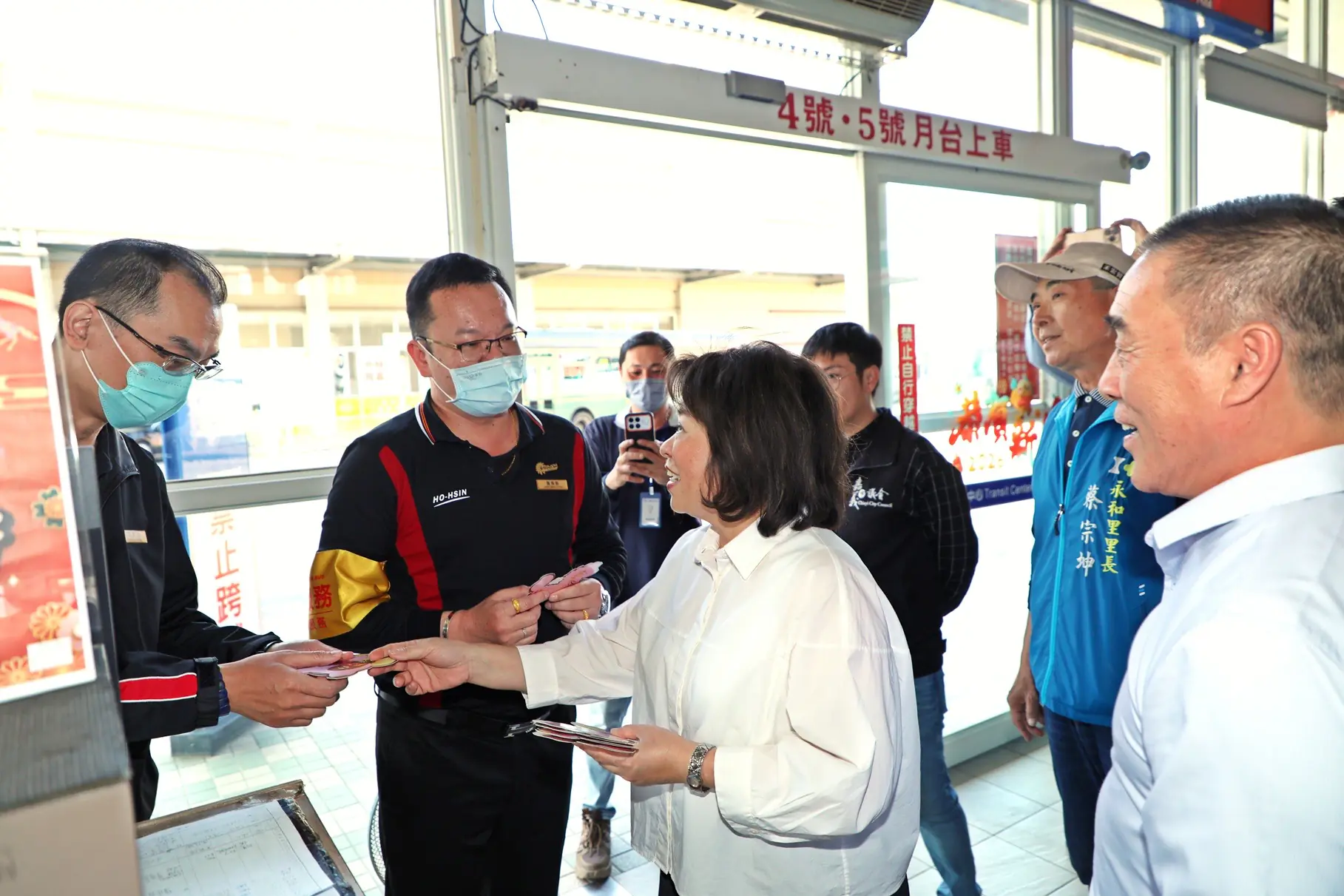 農曆春節將至,長途旅客多使用鐵路、國道客運及公車返鄉或走春旅遊,為能掌握轉運中心旅客疏導作業情況、確保行車安全與順暢,黃敏惠市長今(12)日帶領市府團隊至嘉義火車站以及轉運中心視察春節疏運籌備狀況,並會同消保官、嘉義區監理所所長、嘉義監理站站長等相關局處人員督導加強大客車安全稽查,保障返嘉遊子及來嘉旅客行車安全。黃敏惠市長今日也於火車站及轉運中心發放小紅包,並祝福來往旅客有個美好的新年。