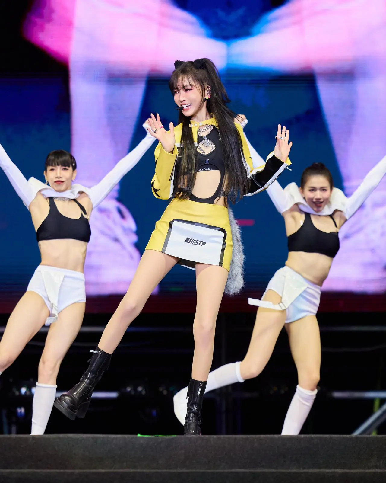為了這次「2026全鴻海運動嘉年華」的演出,謝金燕特別準備「鴻海限定版」歌單獻給鴻海觀眾作為「馬年專屬禮物」,包括開場嗨爆的〈嗶嗶嗶〉,到〈Turn口罩〉、〈月彎彎REMIX EDM〉,到經典舞曲〈含淚跳恰恰〉、〈ㄧ級棒〉、〈姐姐〉,狂秀辣舞美腿的她頓時把大巨蛋變成電音派對,讓全場觀眾沸騰!值得一提的是,謝金燕特別選唱了最近在破四億電影《陽光女子合唱團》再度爆紅的插曲、同時也是自己經典代表作的〈練舞功〉,把氣氛帶到最高點!對於這首歌再度翻紅,謝金燕笑說:「這首歌紅了20年,編曲版本多到數不清,最近大家都在跳〈練舞功〉,不分老少跟著旋律一起動起來,根本是一種全民運動,大家都來練一練!」現場觀眾也跟著節奏齊跳,氣氛嗨到最高點。