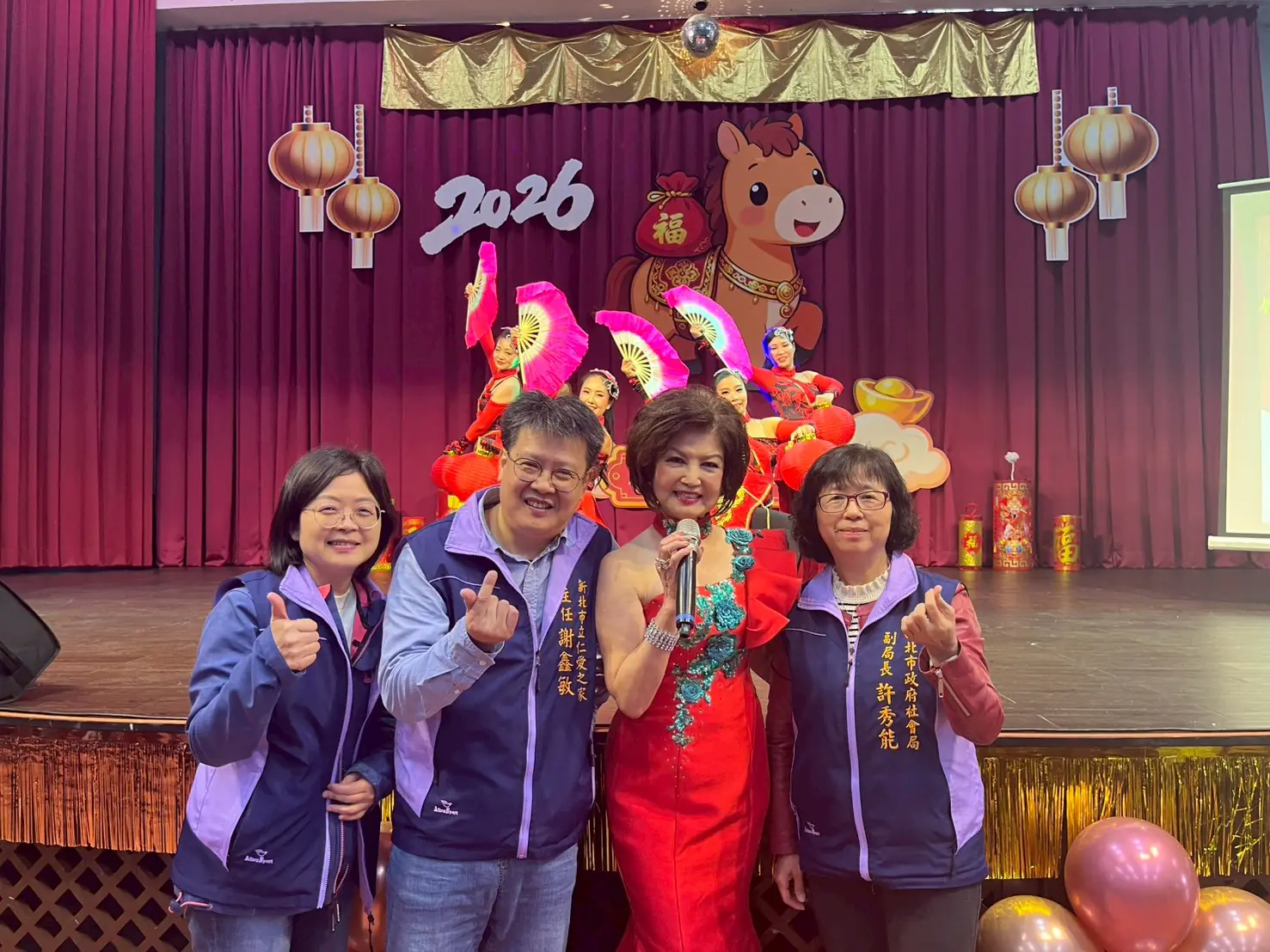 新北市立仁愛之家昨(12)日舉辦「春節圍爐聯歡會」,邀請院內長者提前共度年節時光。與仁愛之家結緣超過十年的「六合室內樂團」再度到場演出,由黃金蓮老師領軍,攜手戲曲名伶哈憶平、藝人久登、琵琶家陳右家及甜美歌手李淑貞等實力派歌手接力登台,曲目涵蓋傳統戲曲與流行歌曲。