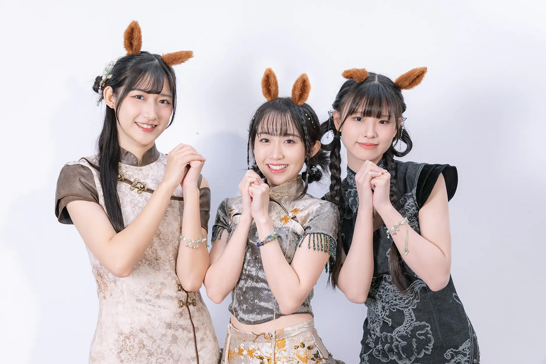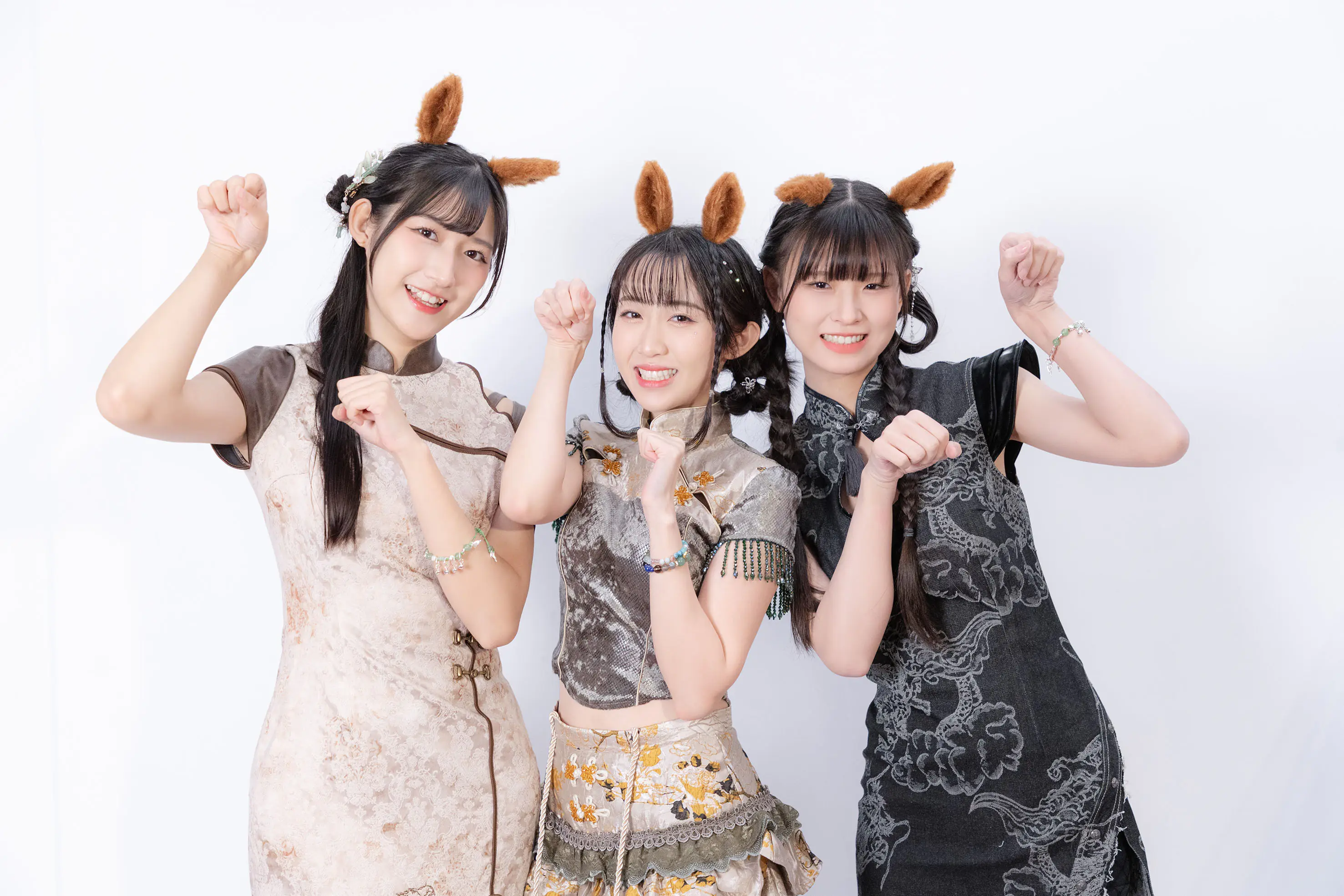 三位屬馬的孟庭筠(左起)黃奕霖.唐靜喜氣棚拍賀本命年 照片提供:好言娛樂