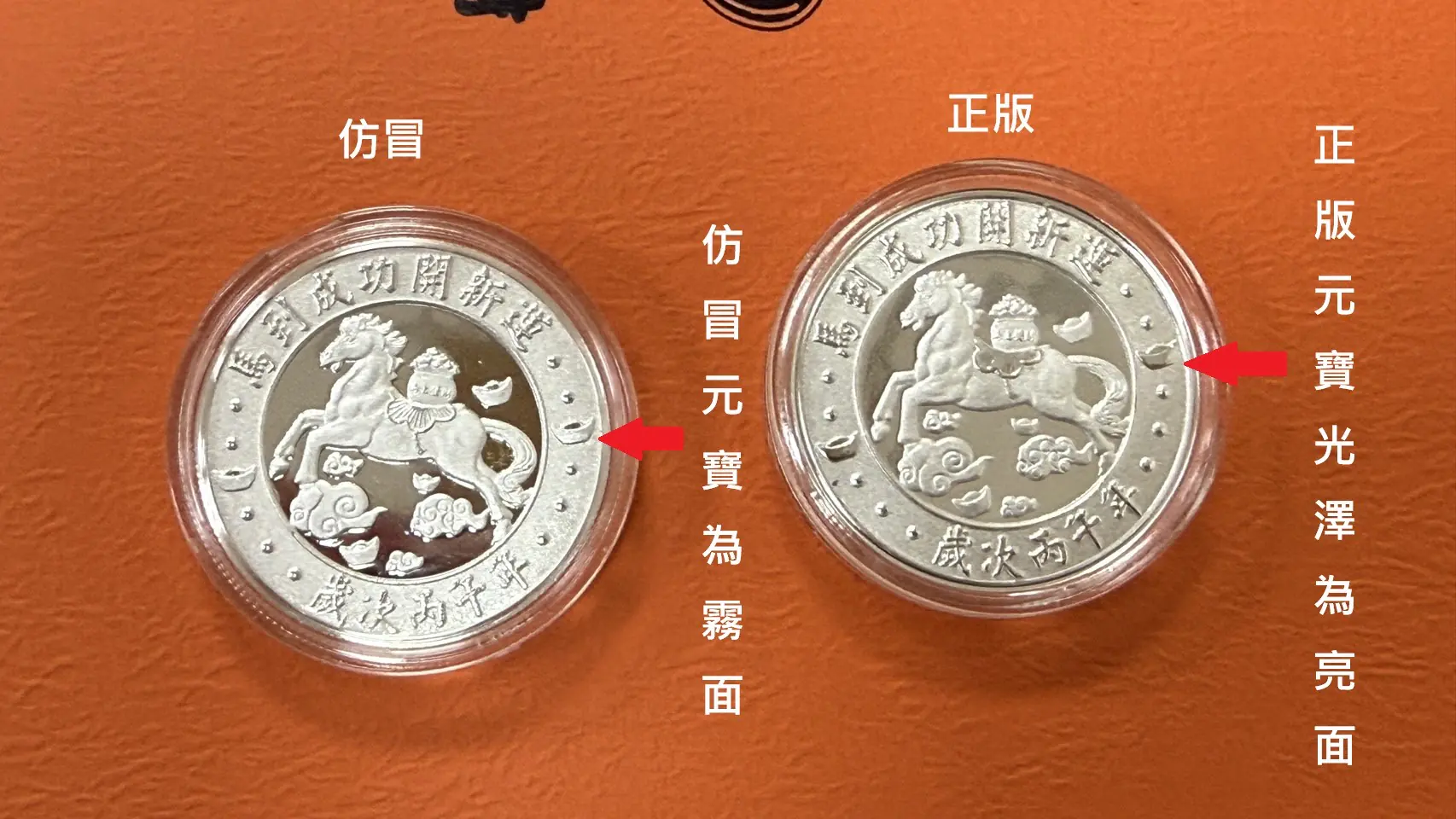 農曆春節將屆,南投縣政府警察局刑警大隊科偵隊接獲情資,發現不法分子利用民眾祈福、求財心理,於網路社群平台公開販售「假2026年度紫南宮馬年套幣」。經縣警局與紫南宮管理委員會求證,確認廟方從未授權任何商家線上或實體販售,另比對真假馬年錢母套幣,發現仿冒品不僅鑄造品質粗糙,樣式有多處不同,且紫南宮已完成商標註冊,為保障紫南宮馬年套幣之商標權,避免仿冒套幣流入市面詐騙民眾,縣警局乃依法查緝取締。