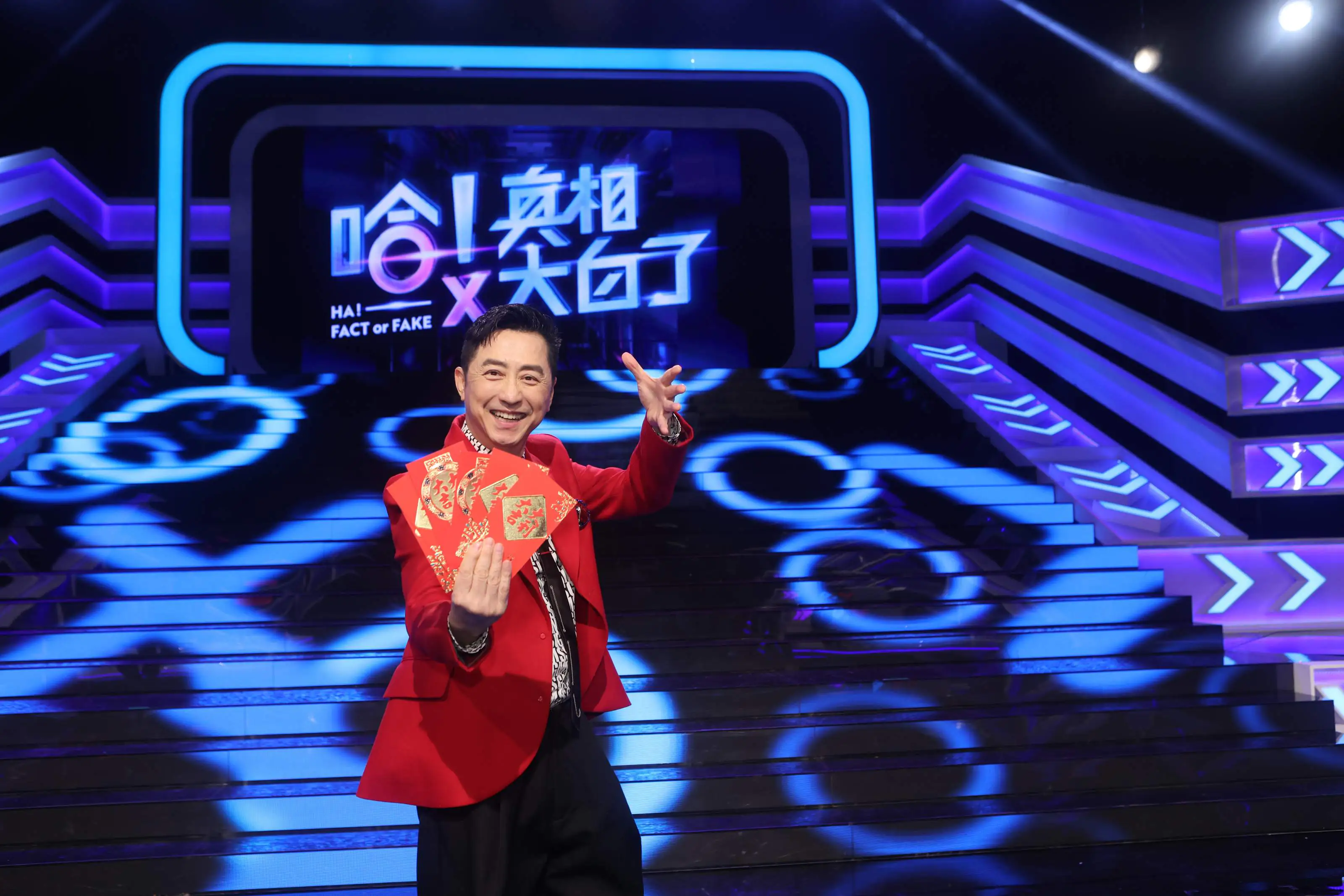 哈林庾澄慶一身大紅、喜氣主持《哈!真相大白了》新春特別節目    照片提供:公共電視