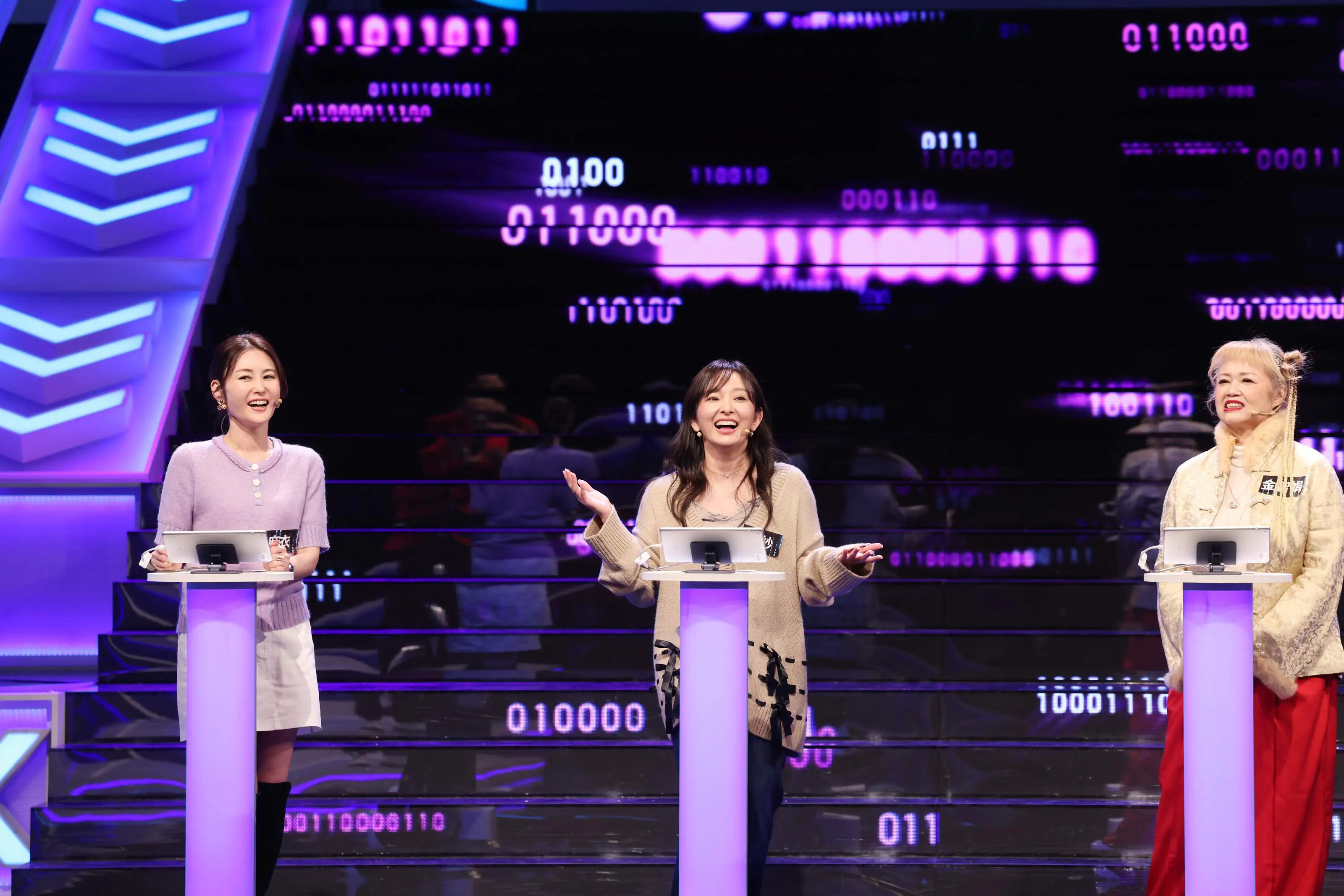 《哈!真相大白了》新春特別節目邀藝人(左起)麻衣、愛紗、金智娟同上節目參賽    照片提供:公共電視