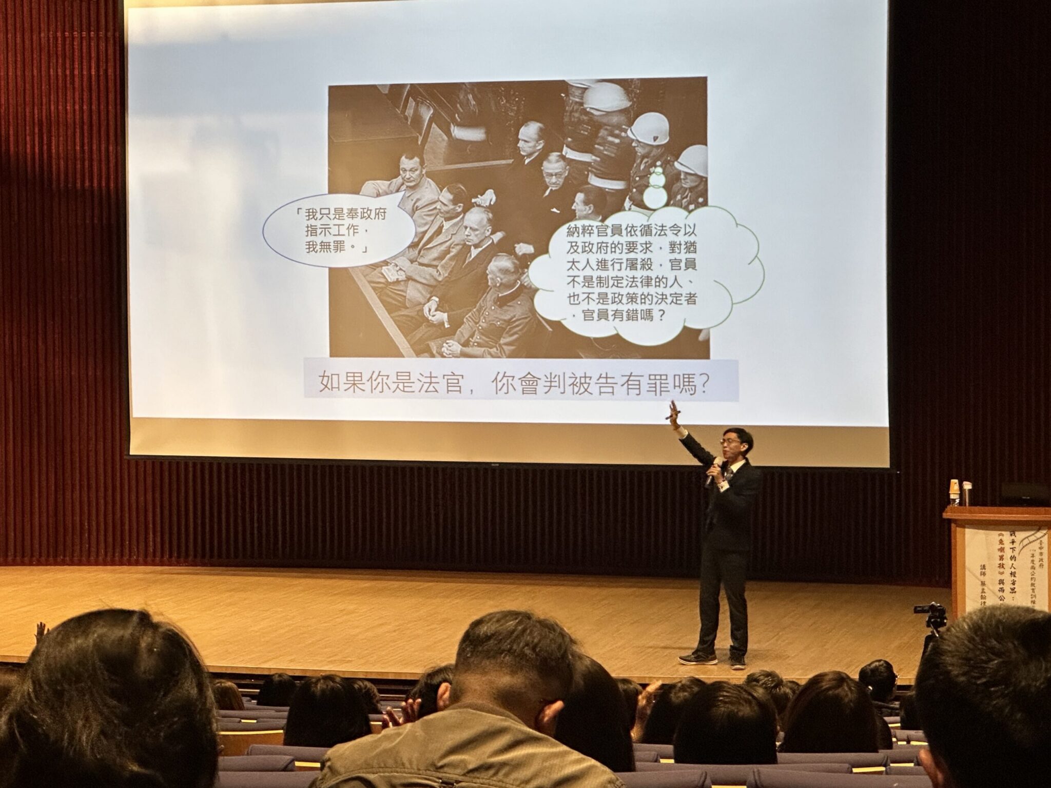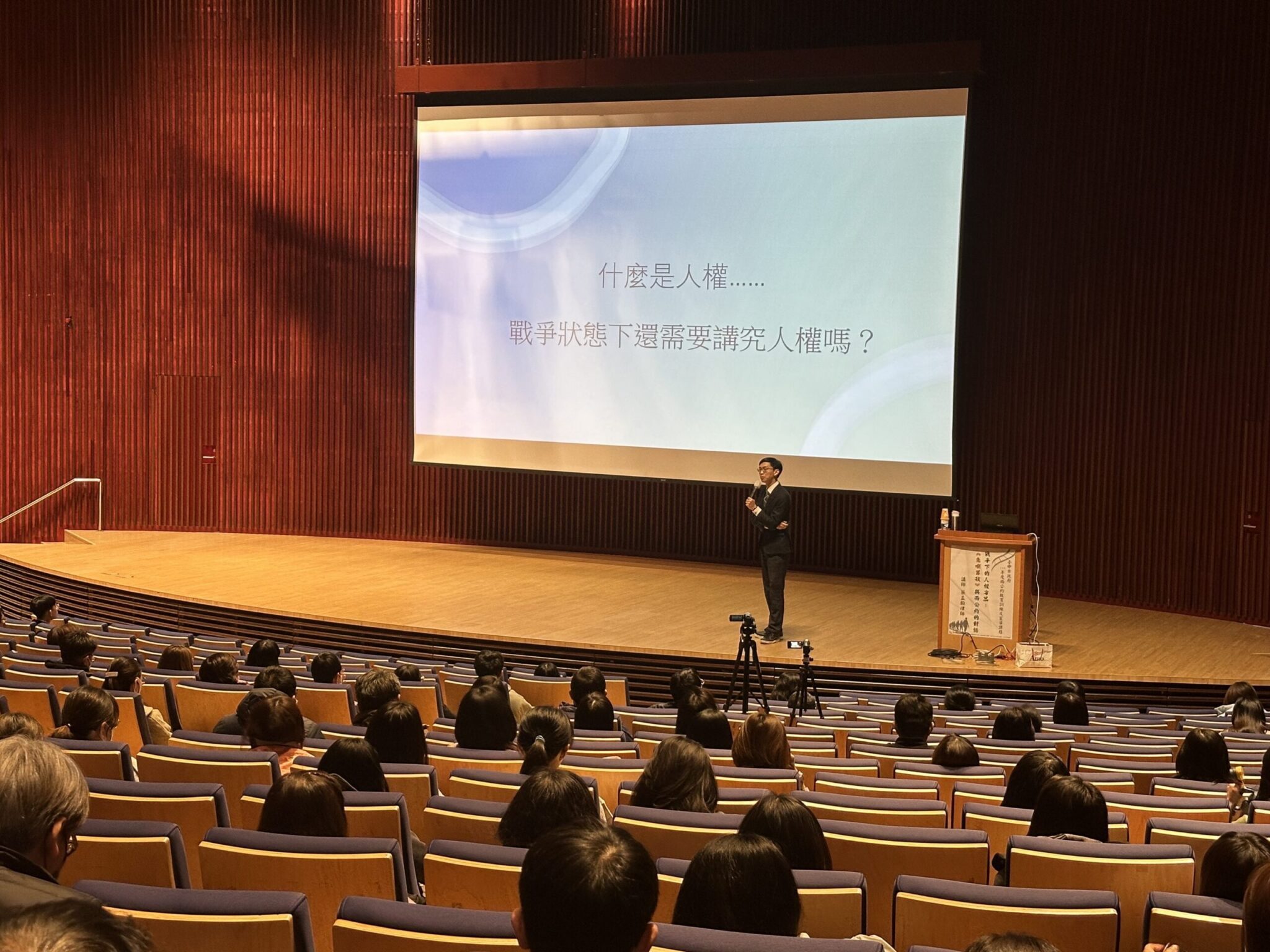 法制局指出,此次課程特別邀請律師蔡孟翰擔任講師,於電影放映後進行深入講解。蔡律師由人權的歷史發展切入,指出人權最初是國內議題,隨著時代演進逐漸受到國際重視,而兩公約正是國際社會對人權價值的具體展現。他進一步拋出「戰爭下有人權嗎?」、「面對戰爭中的敵人,應該講武德嗎?」、「惡法是法律嗎?」等議題,引導學員深入思考人權的本質。