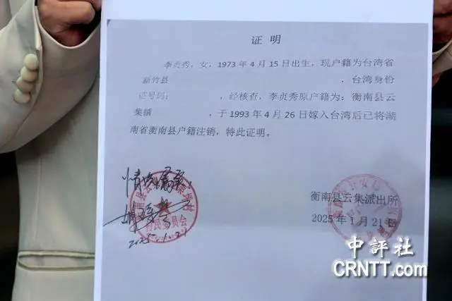 陸委會昨天表示,李貞秀的除籍證明書格式、內容“有點怪異”,所以僅採認除籍證明書繳回“移民署”時間2025年3月,這也顯示李貞秀在2023年底登記成為民眾黨不分區“立委”候選人時具備“雙重戶籍”。