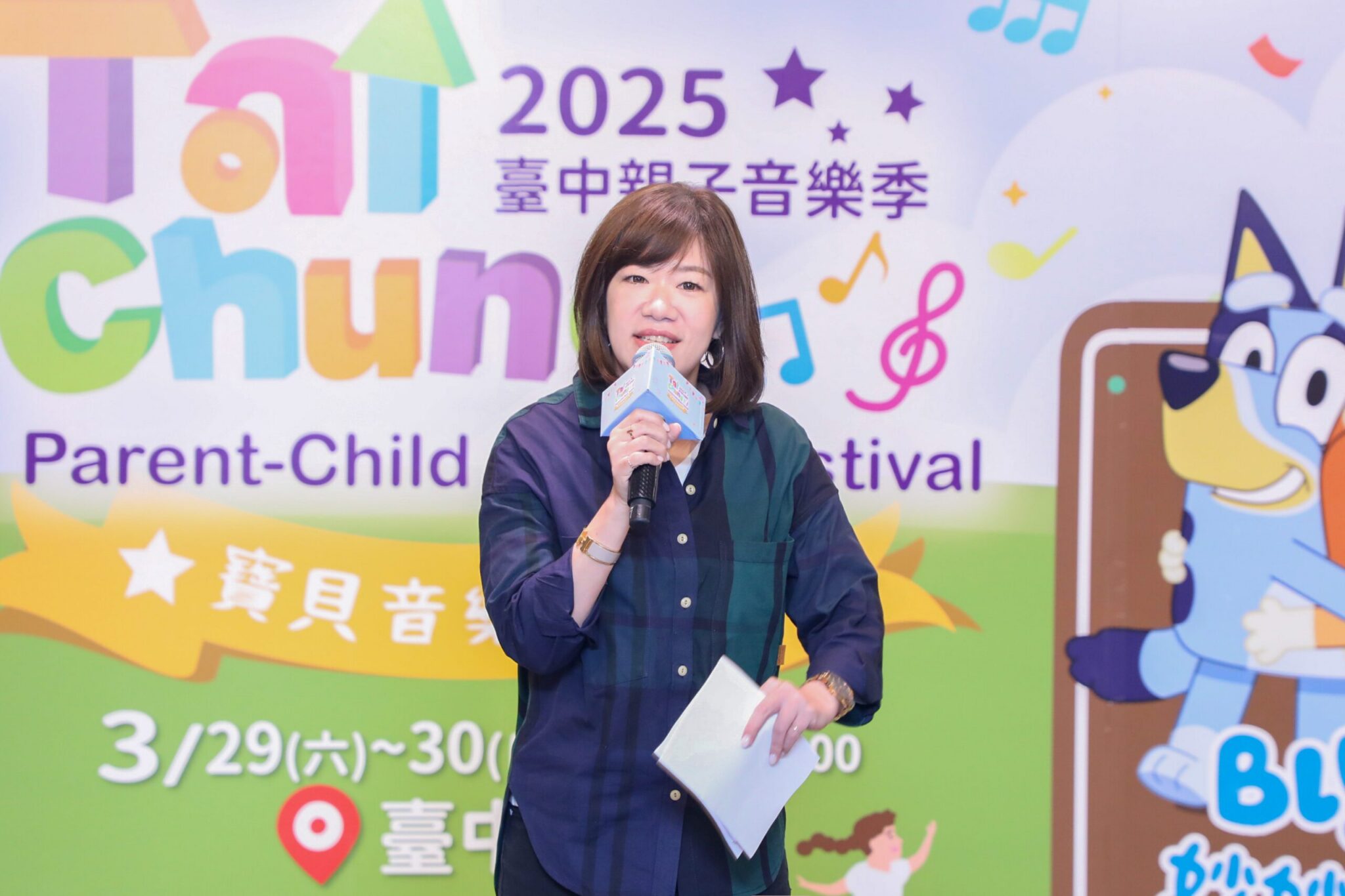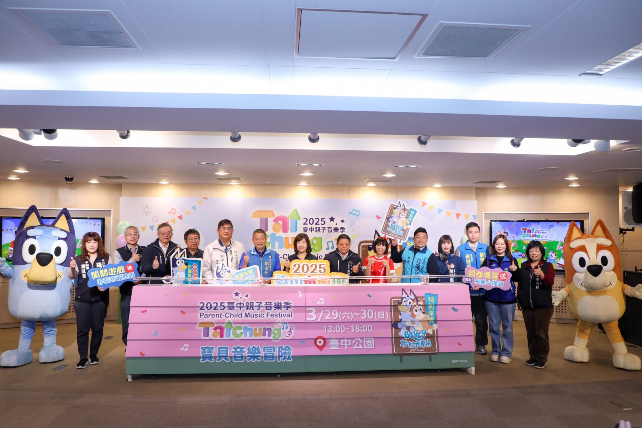 卡通界巨星在台中!迎接兒童節,台中市政府新聞局舉辦「2025台中親子音樂季」,以「寶貝音樂冒險」為主題,打造豐富的舞台表演,將於3月29、30日在台中公園可愛登場。新聞局長欒治誼表示,台中親子音樂季邁入第8年,今年活動推出三大亮點,首度邀請全世界超人氣狗狗「Bluey妙妙犬布麗」到台中,設置全台首座4公尺高的布麗氣偶,更推出「布麗獨家限量小禮」,客製化布麗帆布提袋和布麗貼紙,邀請大、小朋友來台中公園一起打卡同樂。