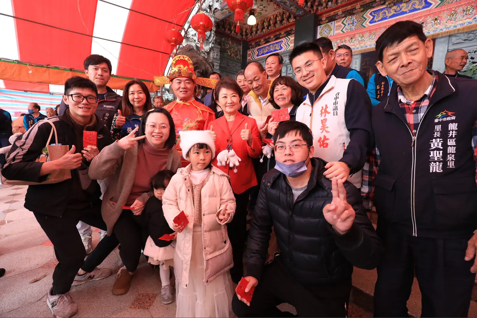 喜迎金馬年!大年初一台中市長盧秀燕一早展開宮廟走春行程,接連前往大里區七將軍廟、西屯區永安宮、潭子區潭水亭及龍井區龍泉岩為市民參香祈福,並發送「馬到金來」小紅包分享新春喜氣。現場民眾大排長龍,甚至有民眾昨晚11點就來排隊,只為了搶得新春好彩頭。盧市長除了向市民拜年祝賀外,也向神明祈福許下三個心願:期盼國泰民安、市政昌隆、廟宇香火鼎盛,迎接福兆一整年。