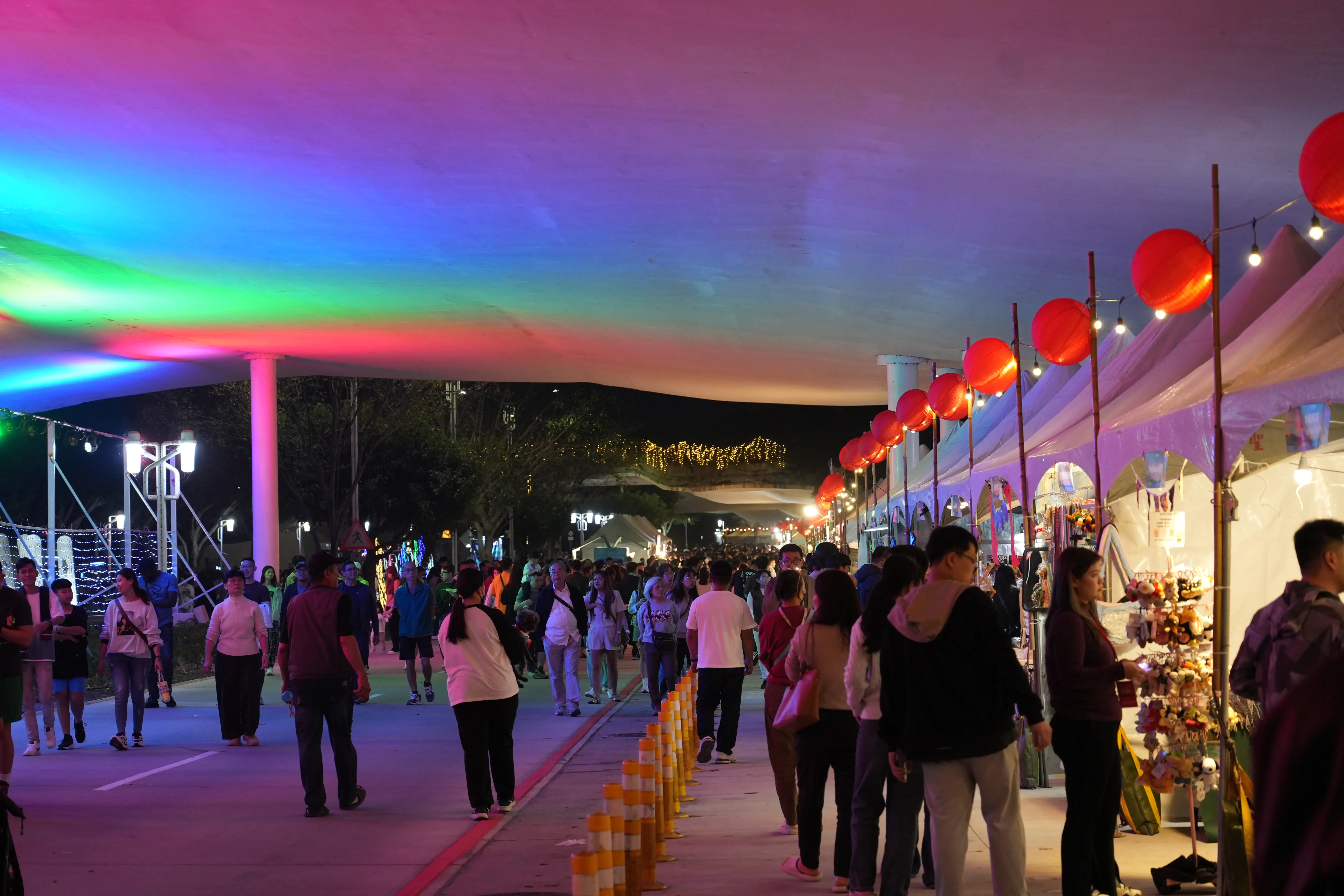 陳局長進一步指出,來到中台灣燈會不只可以追極光,還有好吃又好買的市集可以逛。適逢農曆生肖馬年,今年燈會攜手在地團隊「大兵市集」以「揪馬吉」為主題,傳達台中廣邀全國民眾攜家帶眷、呼朋引伴來賞燈的心意,四大亮點包括「超過150家品牌進駐」、「3種DIY體驗活動」、「馬年限定視覺拍貼體驗」、「32組以上街頭藝人」輪番演出,無論是親子家庭、情侶出遊或好友相約,皆能在「揪馬吉」市集感受到濃厚的年味。