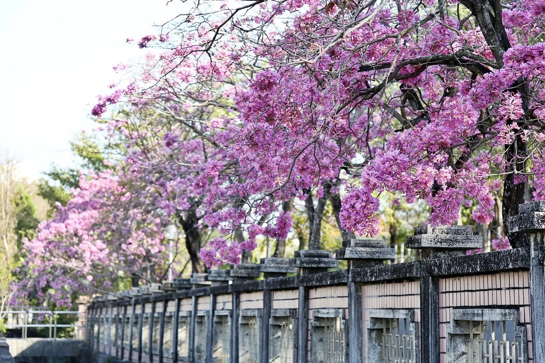 市府觀光新聞處處長張婉芬歡迎大家把握花季來走春,位於嘉義市區世賢路與高鐵大道路口的國立嘉義特殊教育學校圍牆旁,洋紅風鈴木花朵正盛放、層層堆疊,遠看宛如一片粉紅雲海朵,成為春節不可錯過的打卡景點。