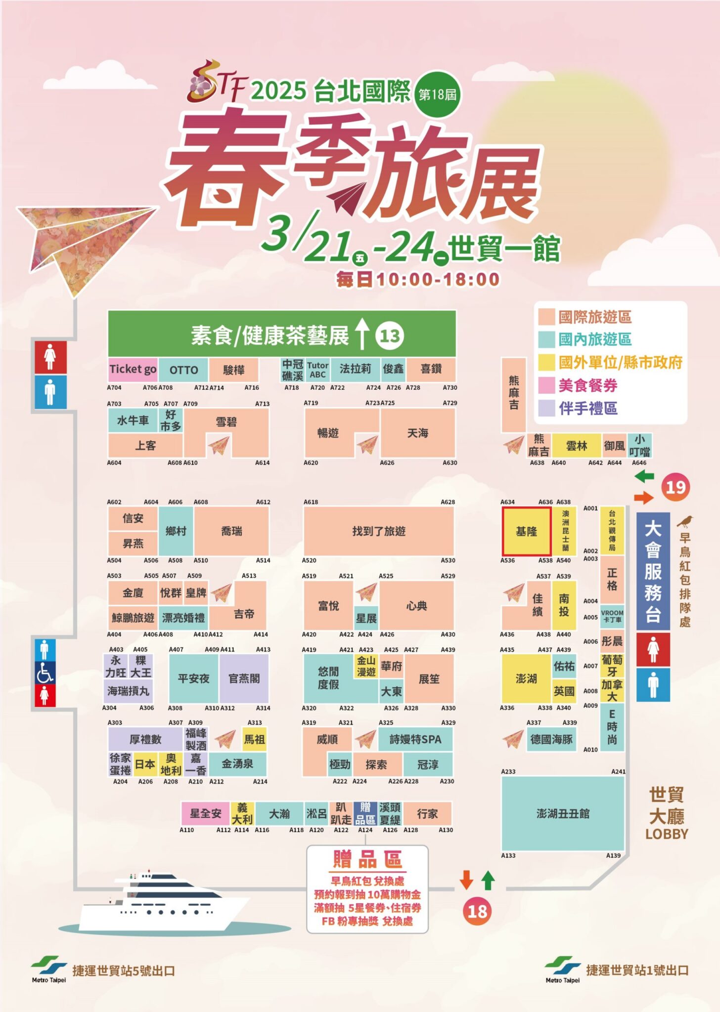 「2025台北國際春季旅展」將於3月21日至3月24日在台北世貿一館盛大登場,基隆館以4米高的巨型郵輪造型搭配大螢幕,強力放送基隆觀光影片,打造視聽覺震撼饗宴,並推出闖關活動、滿額好禮及豐富的互動遊戲等多重好康。