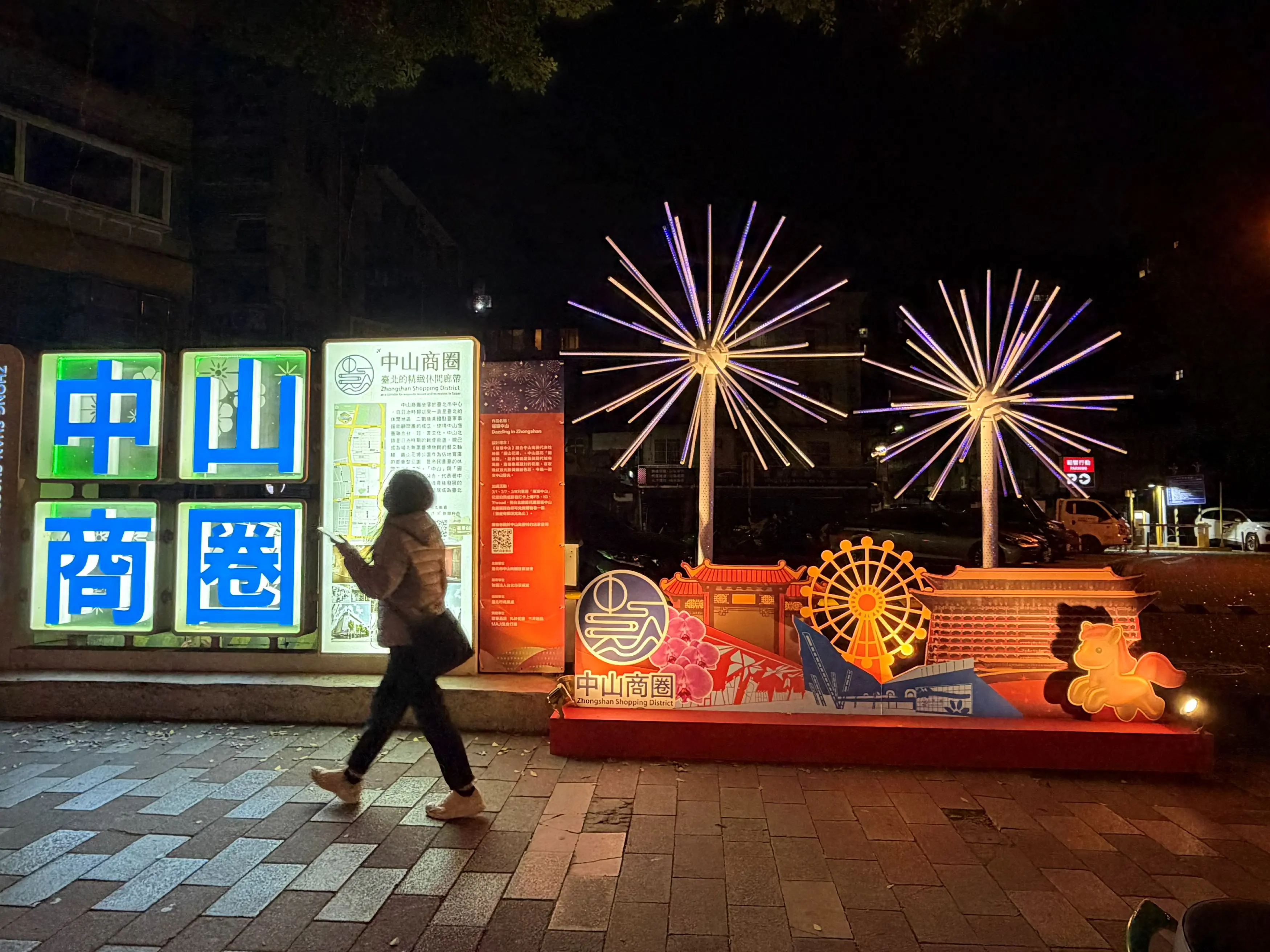 觀傳局指出,鄰近花博展區的中山商圈在花博公園入口廣場舉辦「慶元宵賞花燈」活動,也特別與台北市景福宮合作串連燈飾點亮中山商圈周邊並設置《璀璨中山》燈組;參觀燈節前後可安排順遊雙城街夜市及晴光市場。位於臺北孔廟前的大龍夜市推出「生龍活虎慶元宵燈節」活動,大龍公園也響應設置《貝貝與他的工具》燈組,好吃又好拍。此外,周邊還有圓山商圈、至聖花博商圈、大龍峒商圈,都可以一路順遊。