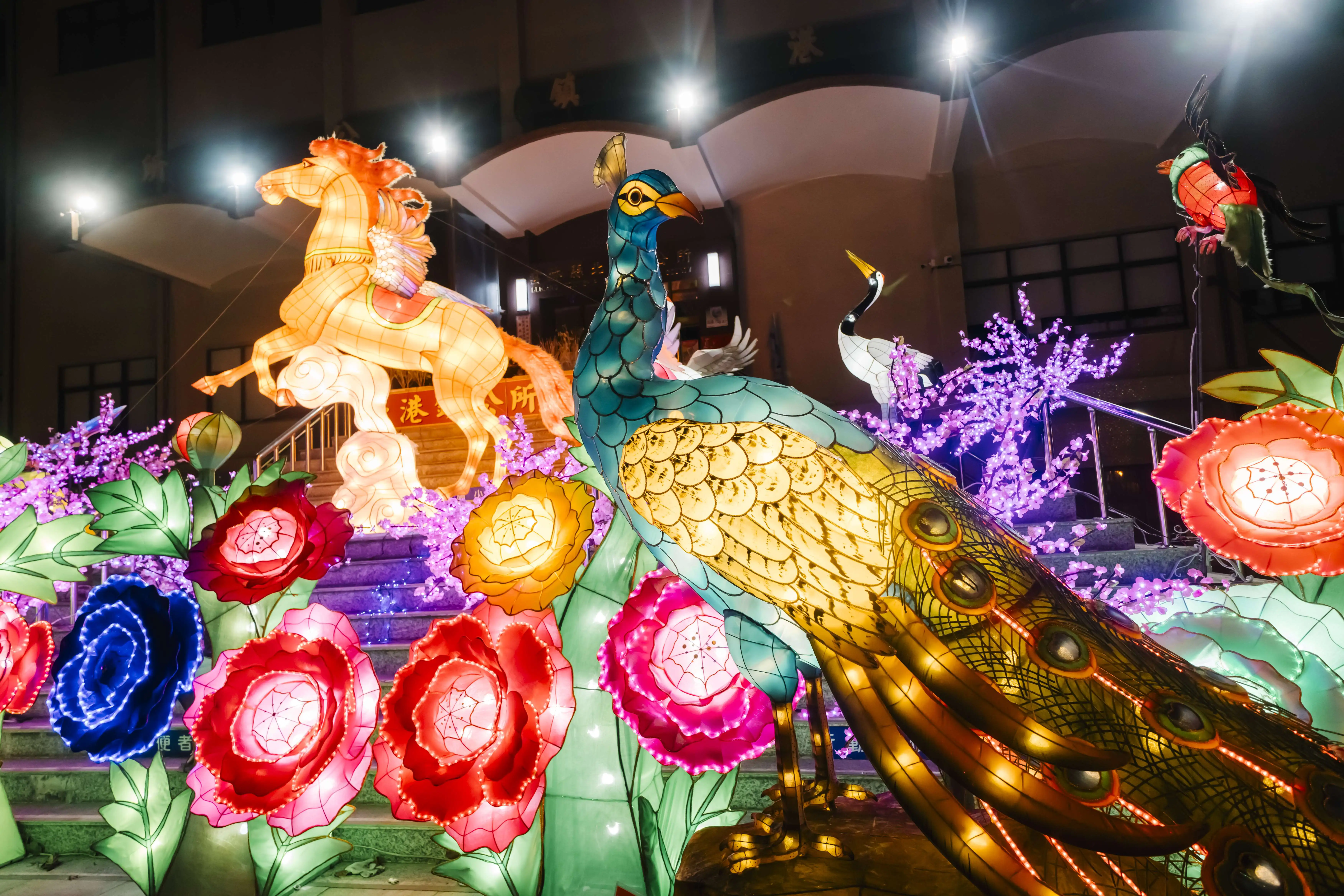 「北港鎮公所燈區」主燈以展翅飛馬腳踏祥雲的造型,象徵勇往直前、好運啟航。