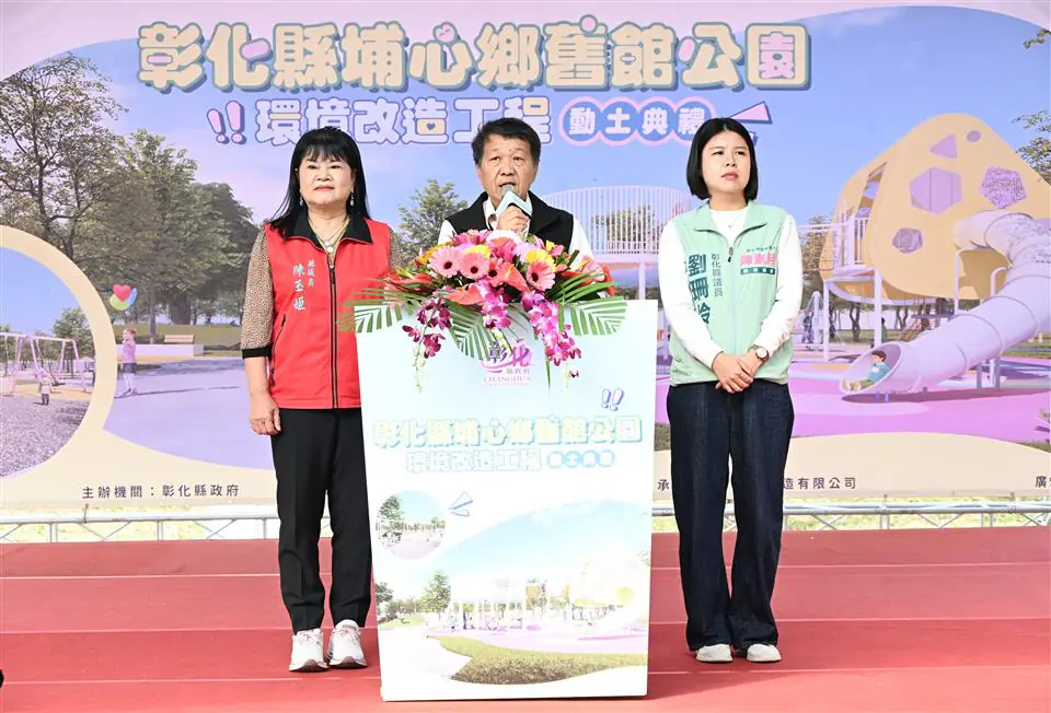彰化縣政府持續推動各鄉鎮共融休憩場域之建置計畫,縣長王惠美今(24)日前往埔心鄉主持「埔心鄉舊館公園環境改造工程」開工動土典禮。王縣長表示,本工程在議長謝典霖及議員們對預算的支持下,自籌2,447萬元,加上增設親子與無障礙廁所等設施加碼600萬元,總計3,047萬元。另以埔心知名的「三蜜」產業為設計主軸,預計將為縣內增添親子休憩新亮點。