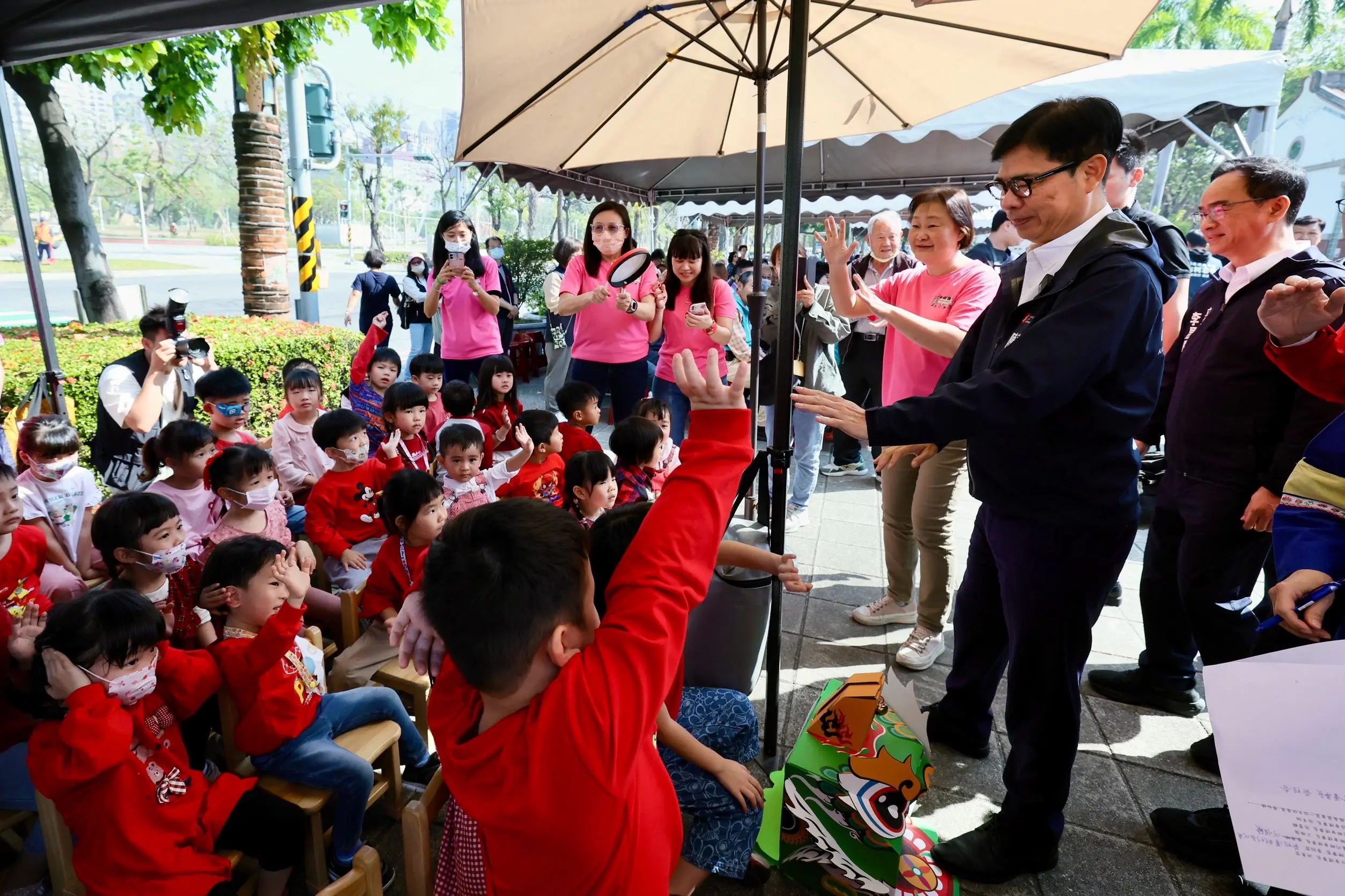 圖説:祭儀圓滿後,市長陳其邁也發送新春開運小紅包向大家拜年。(高市府提供)