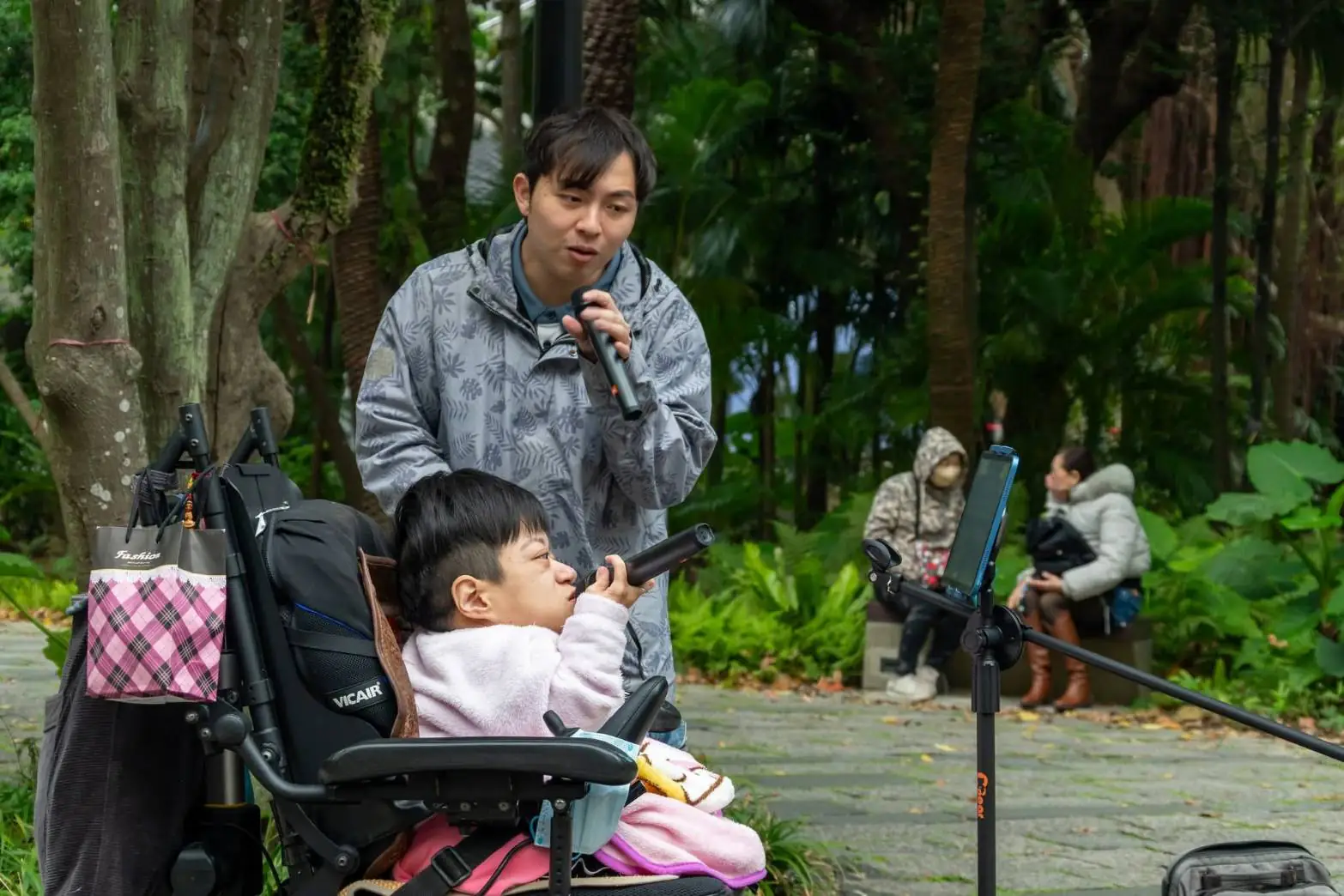 小雪和小新街頭演唱時,教養院也組成親友團前往加油打氣,包含前院長謝鑫敏、外聘督導廖華芳老師、平時就很疼愛小雪的吳松洋、黃盟宗等幾位志工大哥也都到場支持。劉文湘院長還率先請女兒偷偷打賞500元,果然立刻引起跟進效應。一些到松菸的遊客,先被甜美嗓音吸引,繼而看到小雪坐在輪椅上唱歌,也紛紛掏出腰包。