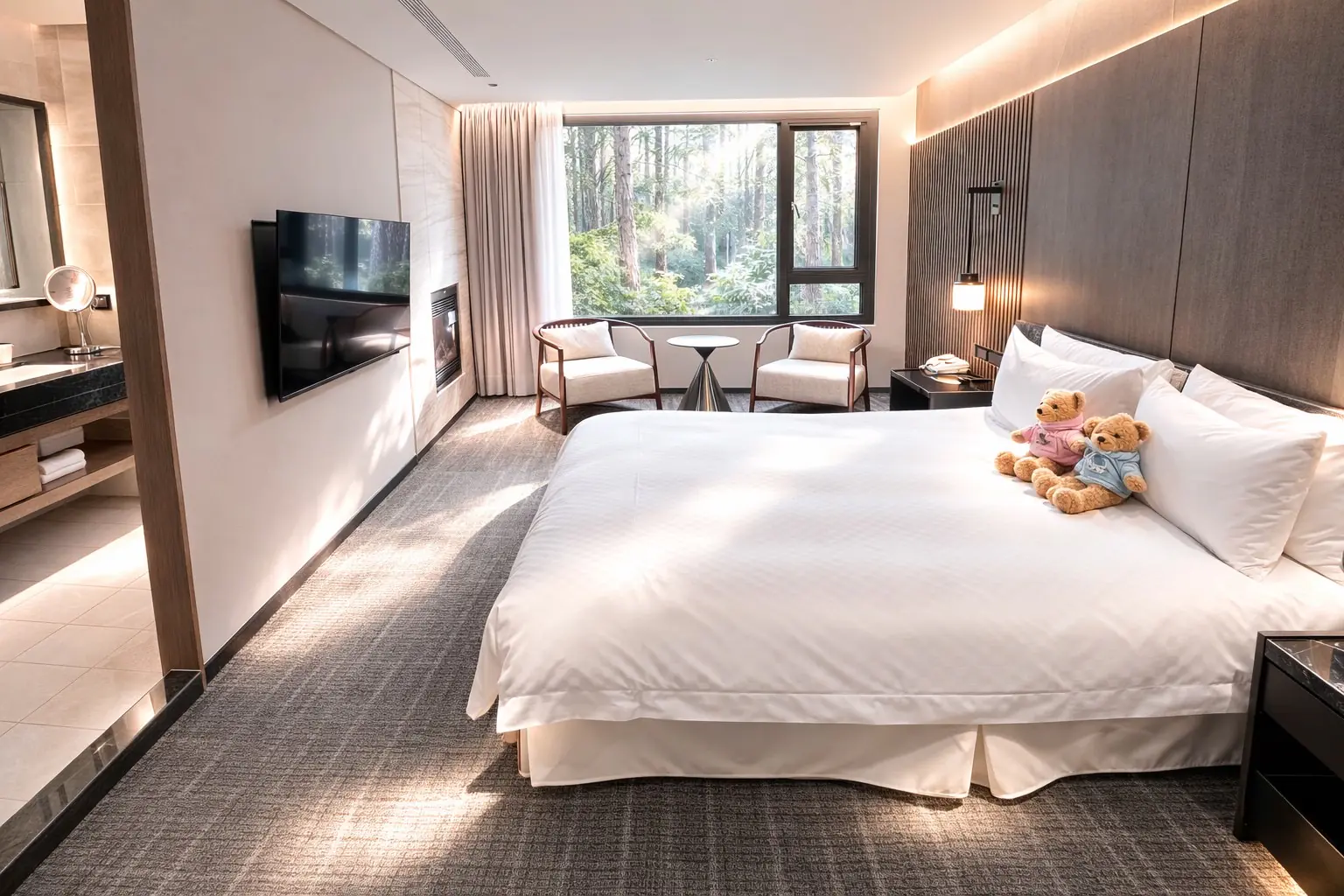 阿里山賓館鄰近沼平車站、沼平公園、阿里山詩路步道,園區內阿龜櫻、緋寒櫻、唐實櫻接力綻放,以「春櫻森活·詩意春光」為主題活動,搭配櫻花主題特色客房,入住2026年全新升級頂樓雲端之森客房、套房、日和雙人房和式設計,感受跨越時空的春櫻盛宴!(圖/阿里山賓館提供)