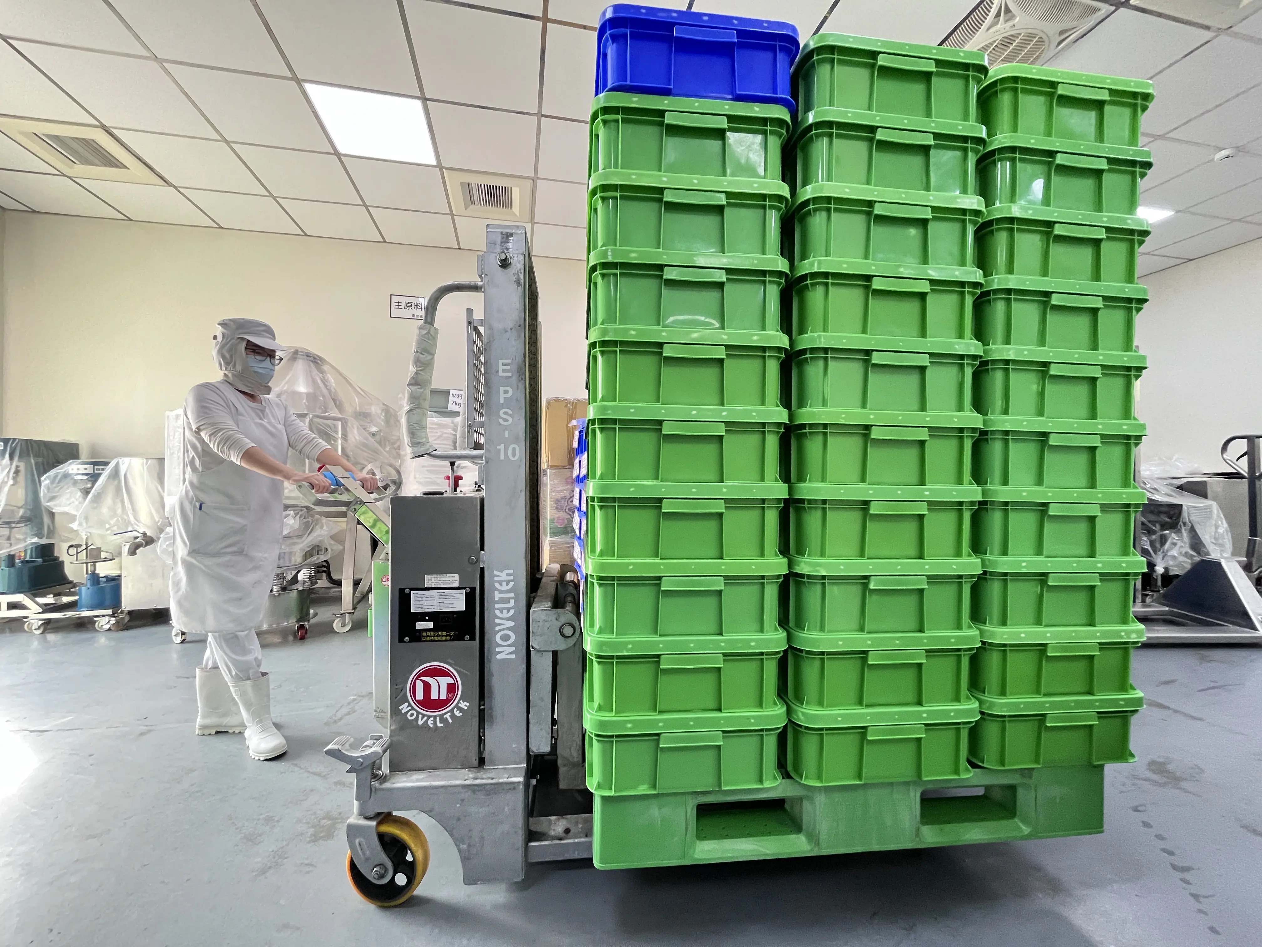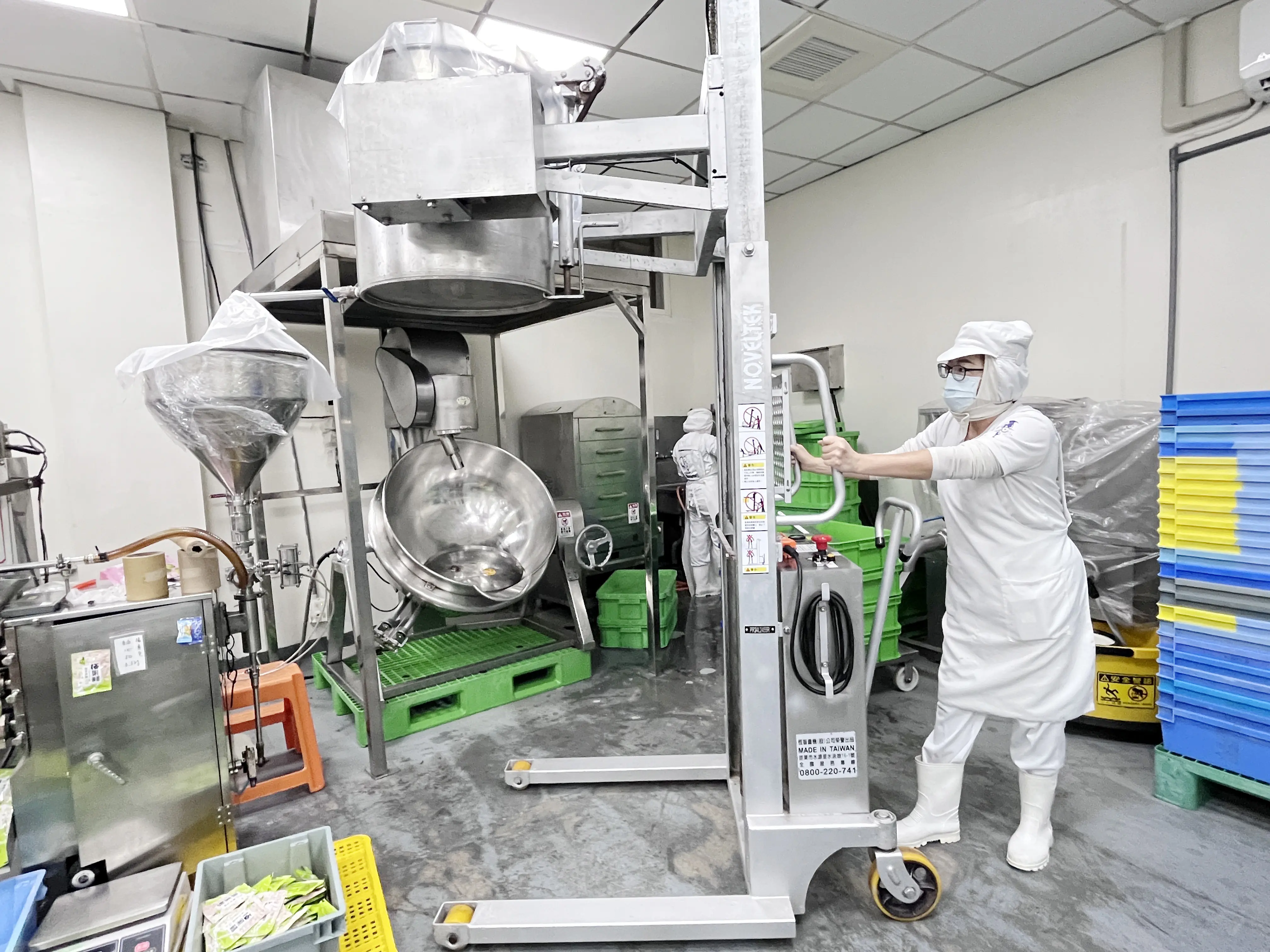 60年次的溫玉萍,目前是梅子產線作業員,每天要進行重複性的梅子調味倒料及原物料搬運入庫等工作,相當耗體力且因肌力老化、彎腰負重搬運,長時間會有腰酸背痛問題,後來公司導入職務再設計方案,添購電動油桶翻轉推高車與步行式簡易電動堆高機,讓作業輕鬆省力不少,笑說「不用每天找痠痛貼布了」。