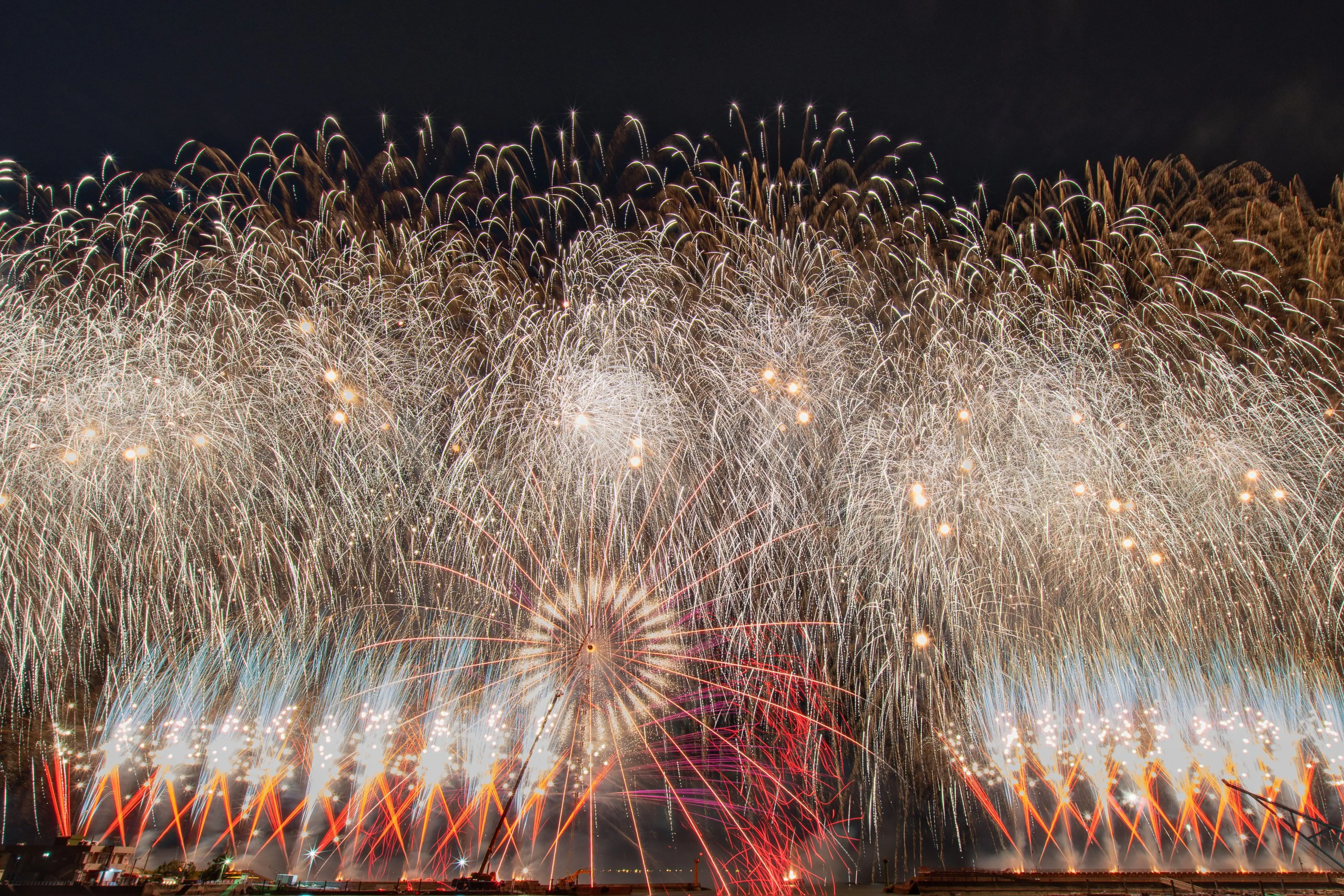 縣府表示,整體編排透過中高空煙火錯落施放,從地面燈景延伸至天際線,打造立體視覺震撼效果,煙火施放高度與節奏均經精密設計,讓觀眾在10分鐘內完整感受由溫暖鋪陳到高潮迸發的敘事曲線,不僅氣勢磅礡,更兼具藝術性與故事性,呈現專業級的節慶展演規格。