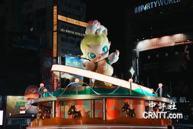 主燈細節亦別具巧思,Baby Molly雙眼設計成象徵財運的“元寶”造型,隨燈光閃爍發出金色光芒,寓意新的一年財氣滿滿。展演尾聲,廣場上方飄起夢幻泡泡,在燈光照射下折射出七彩光暈,吸引大小朋友驚叫聲連連、紛紛舉起手機記錄瞬間。聲光、煙霧與泡泡交織出層層光影效果,為西門町夜空揭開一場融合潮流IP與節慶氛圍的視覺盛宴。