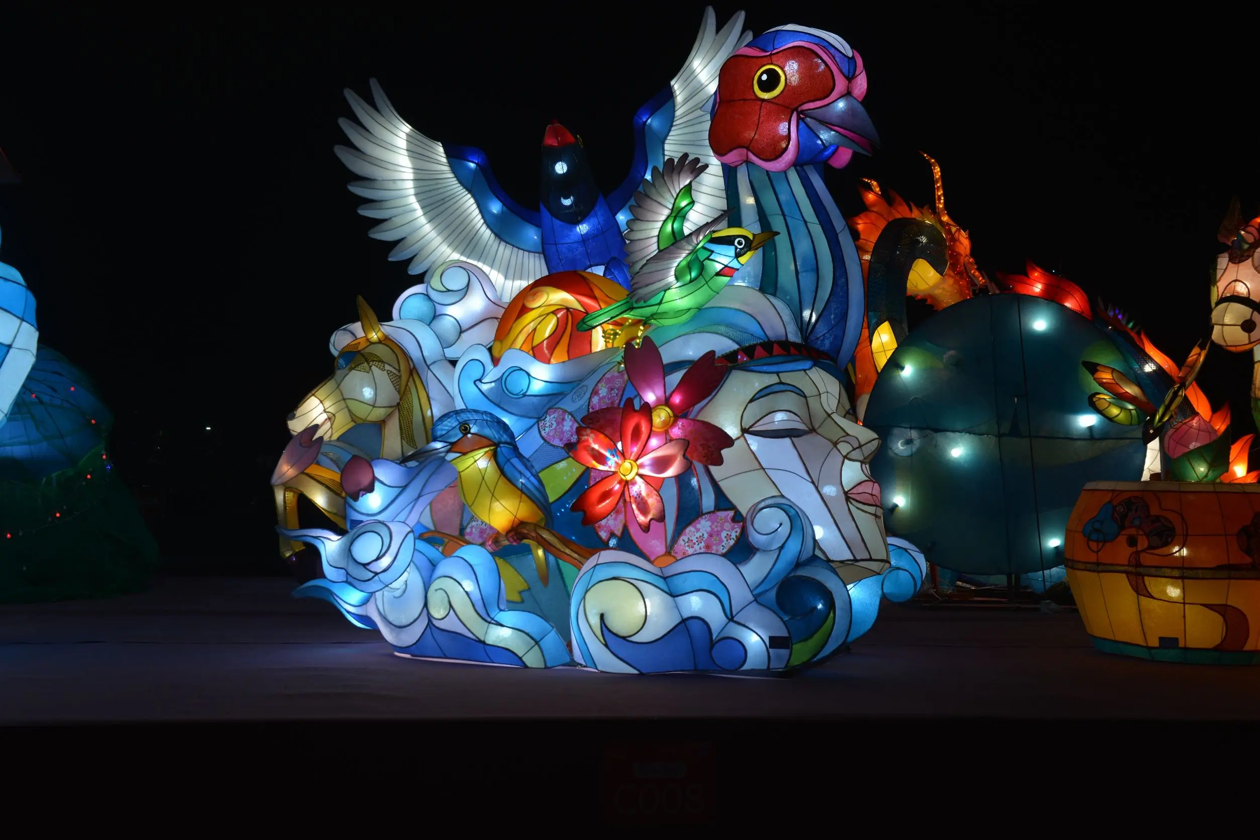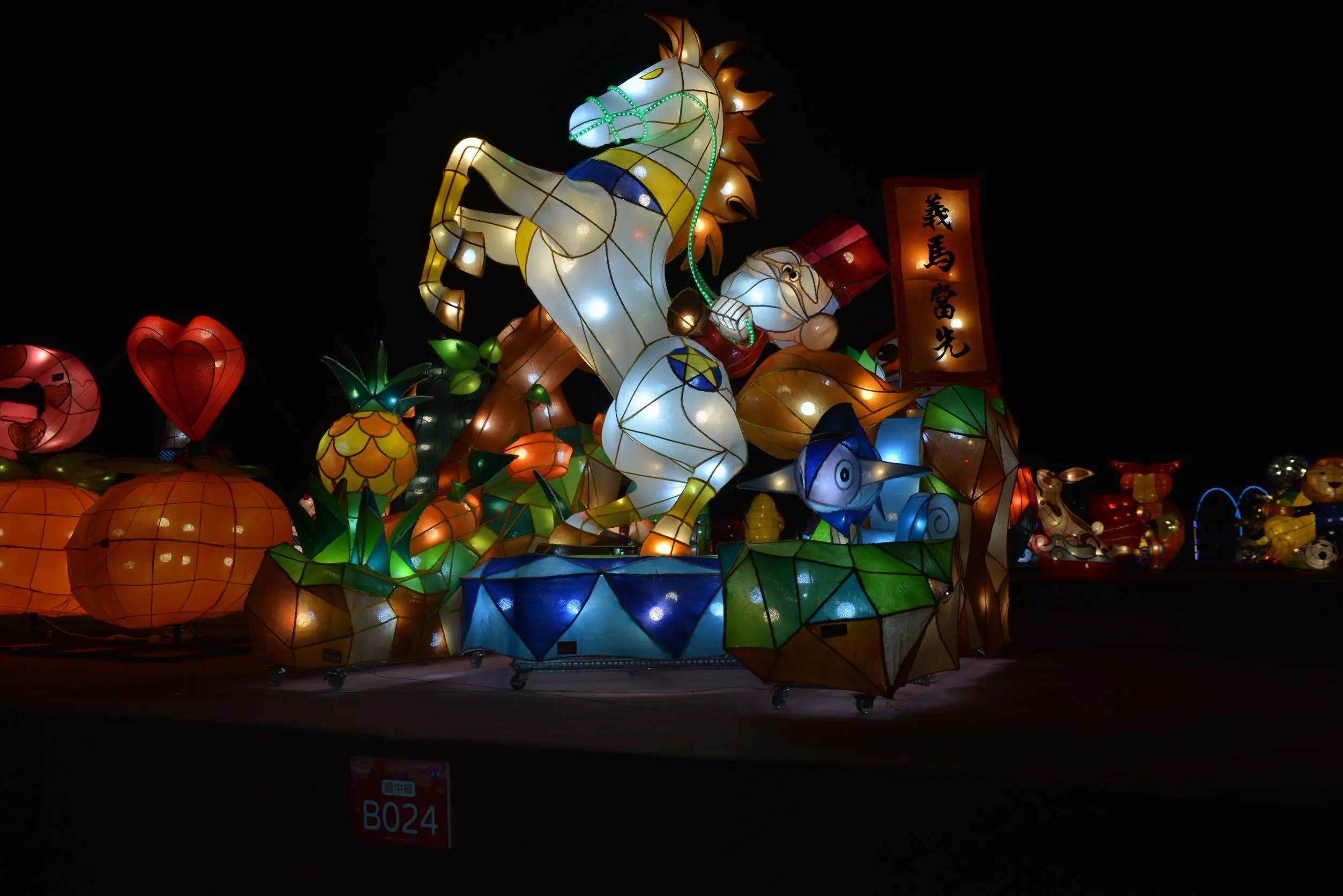 其中最受矚目的5組「燈王」封號,分別由結合科技互動的「蚵寶破浪向前行」、融入在地文化的「義氣沖天、義馬當先」等作品摘下,展現台灣花燈工藝非凡魅力。