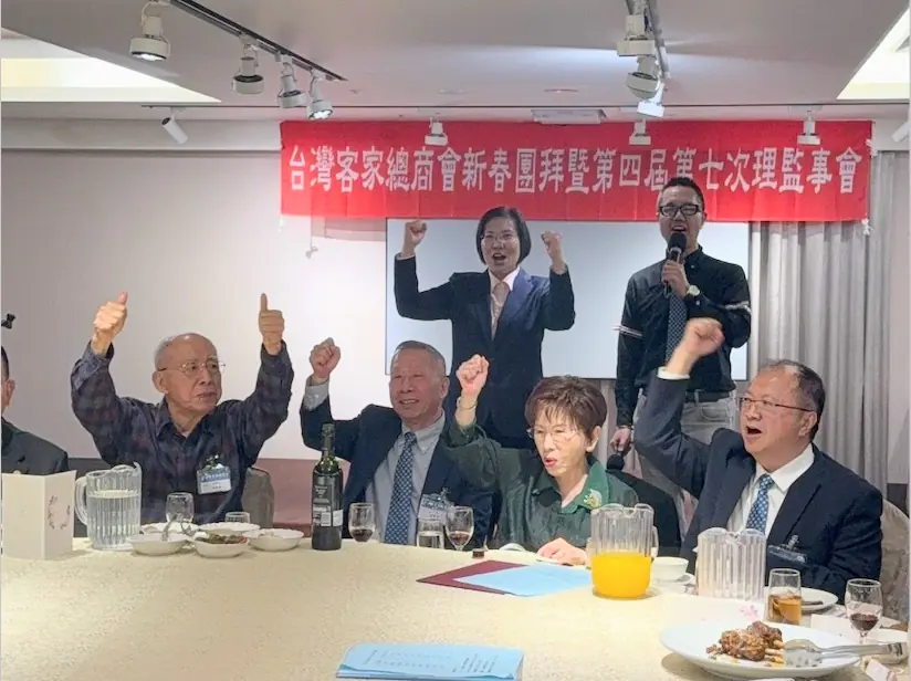 客家大團結!國民黨新竹縣長參選人、立委徐欣瑩近日在臉書上po出日前出席「台灣客家總商會新春團拜」影片,其中前國民黨主席吳伯雄(伯公)以及洪秀柱前主席皆高舉雙臂,為徐欣瑩大喊「凍蒜」,吳伯雄也特別叮囑徐欣瑩四個字:非贏不可。