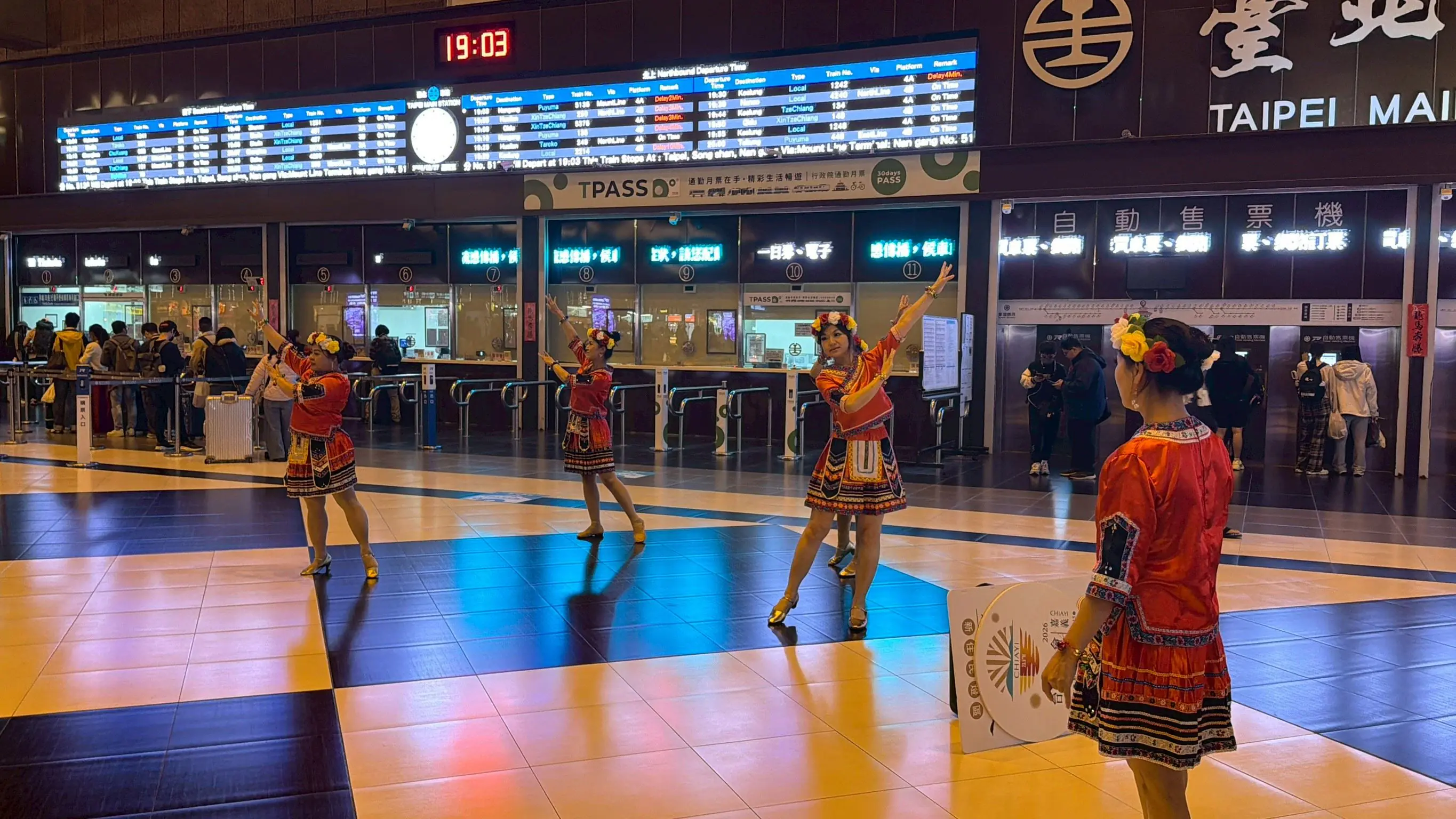 2月27日首站選在全台交通核心台北車站候車大廳,邀請「JW舞團」新住民姊妹們身著繽紛的傳統服飾,結合現代舞節奏,在熙來攘往的人潮間展現文化魅力,令過往通勤族紛紛駐足拍照,將嘉義的熱情跨越地域傳遞至首都。