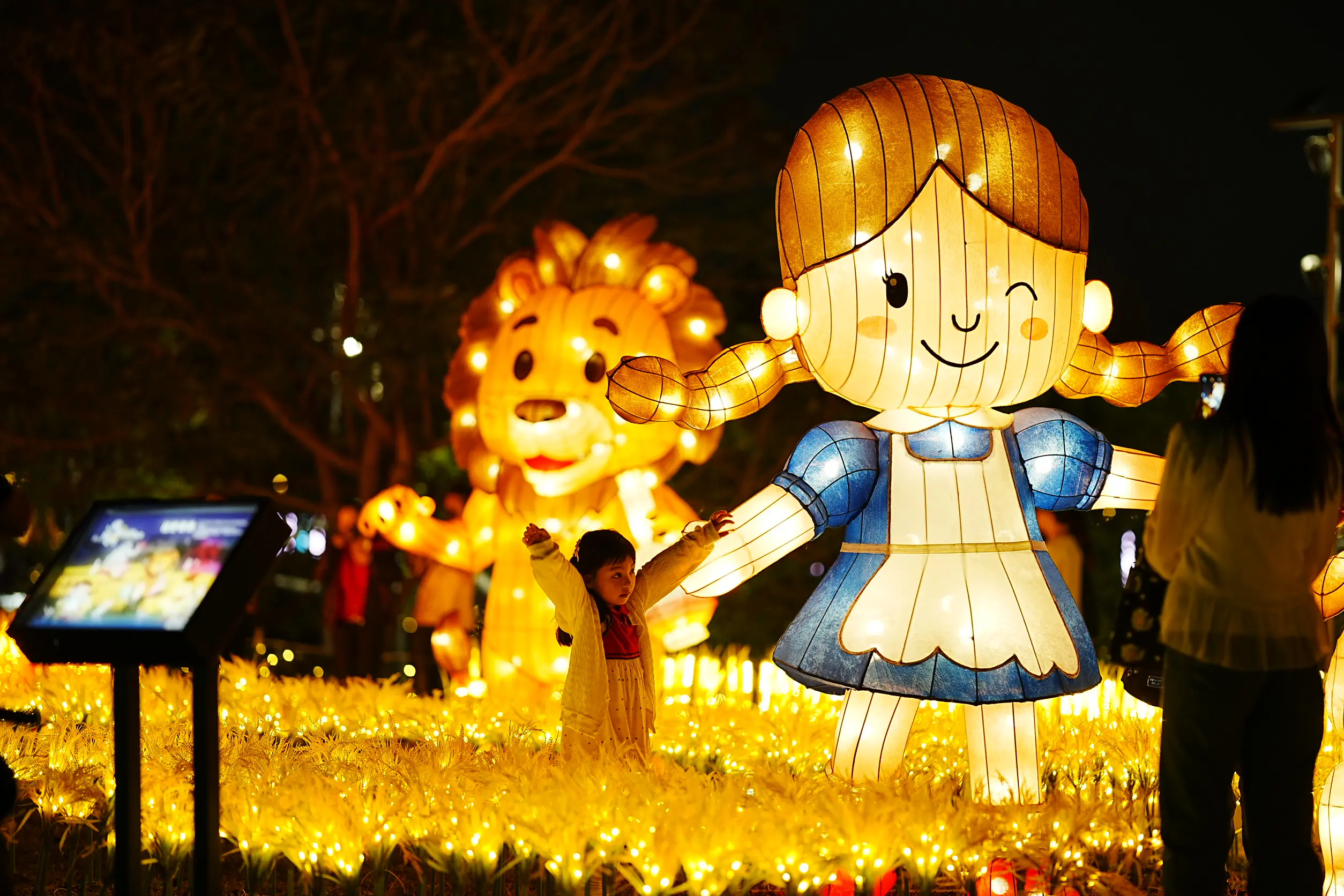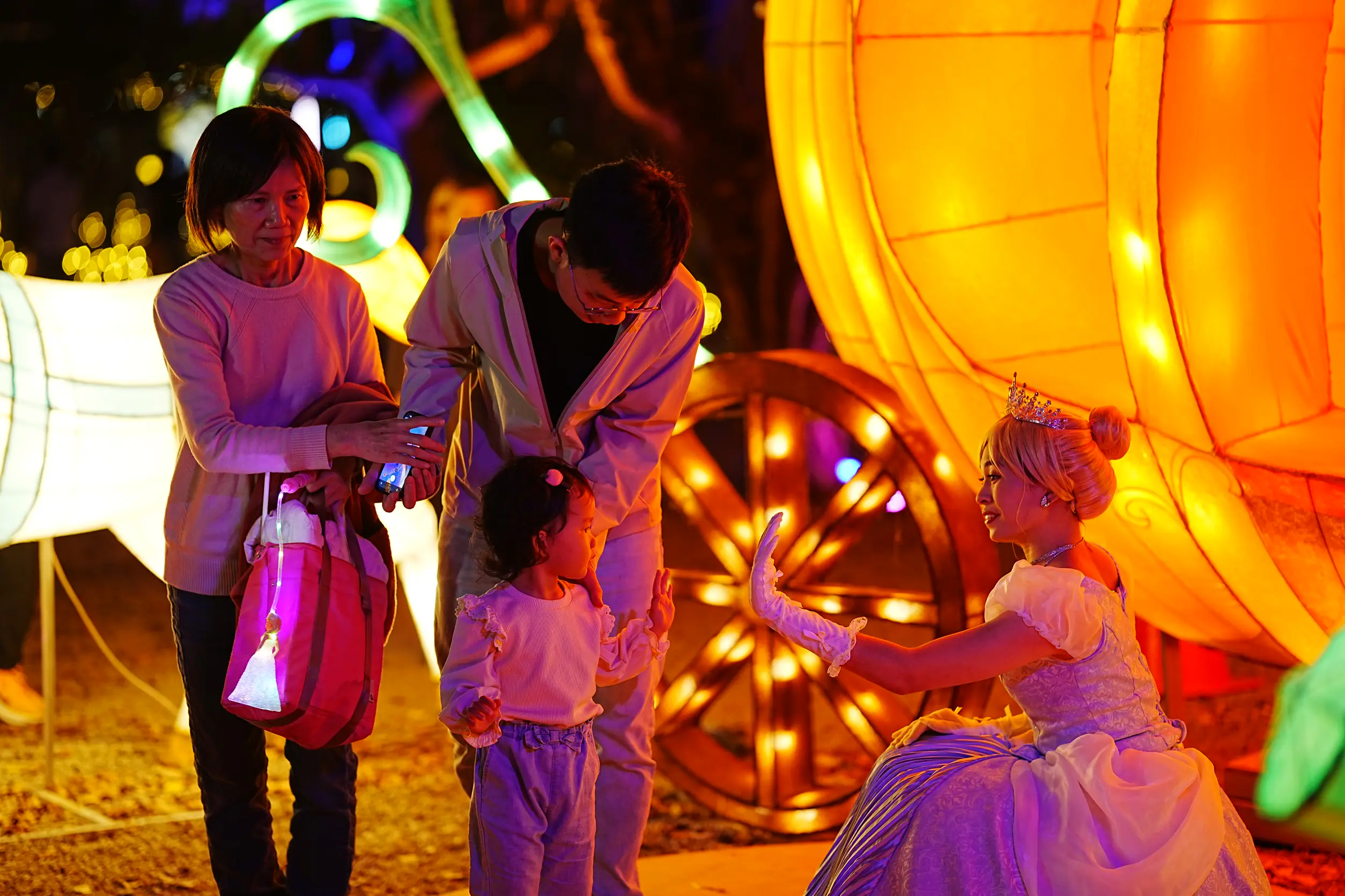 教育局表示,走進「童趣歡樂谷」燈區,彷彿踏入一座會發光的童話世界,金黃燈光宛如星河鋪展,搭配林間光影與繽紛燈飾,在散步賞燈時,也能享受一段專屬於家人的夜間小旅行;許多家長推著娃娃車、牽著孩子慢慢走,沿途拍照打卡、留下合影,也有許多祖孫三代同框拍照,留下「一起長大」的珍貴畫面,成為燈會最暖心的風景。