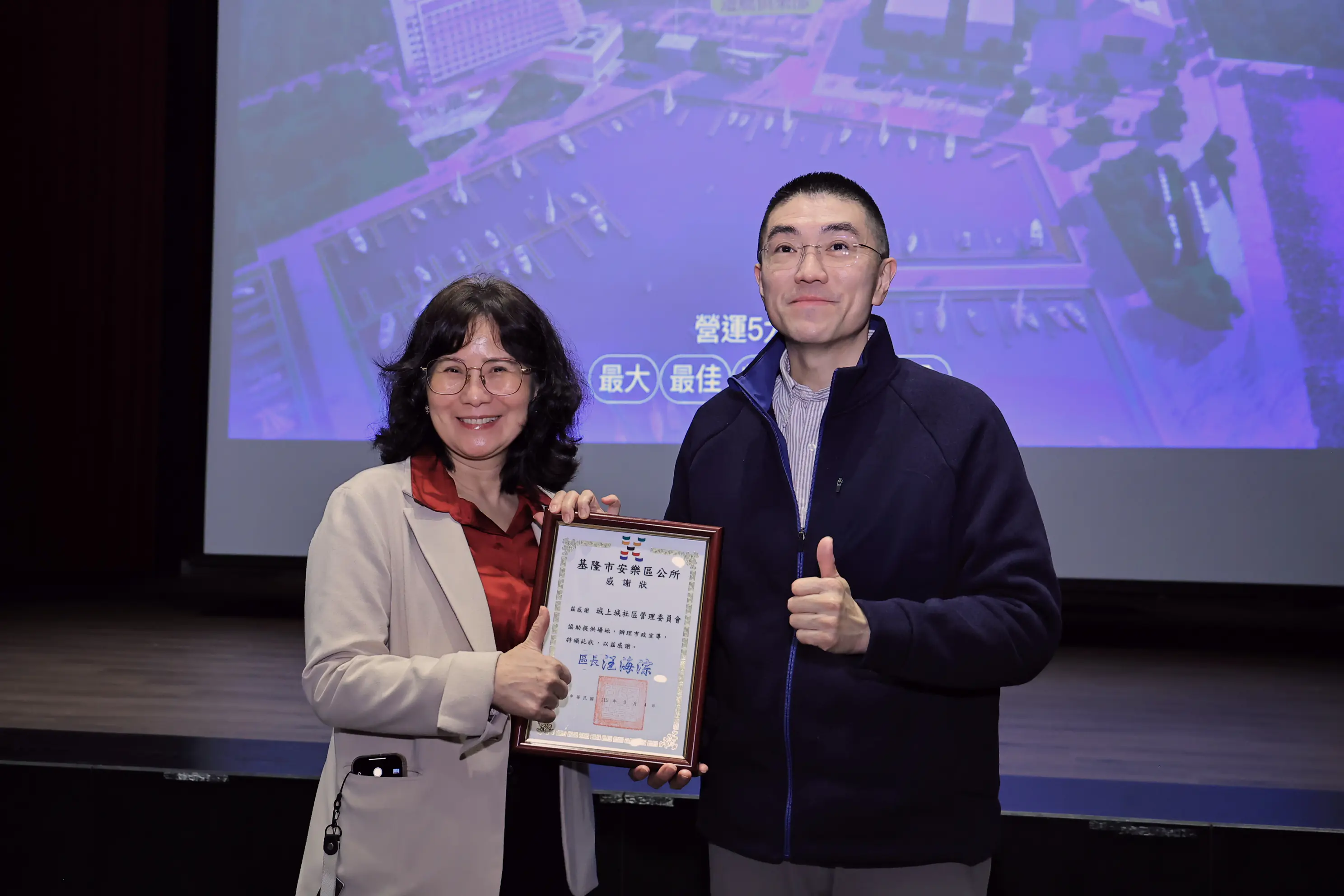 謝國樑表示,市府持續推動多項建設與民生政策,包括騎樓整平、行人有序、全齡照護、基隆捷運與北五堵開發、八斗子遊艇碼頭及污水接管工程等,均有具體進展。